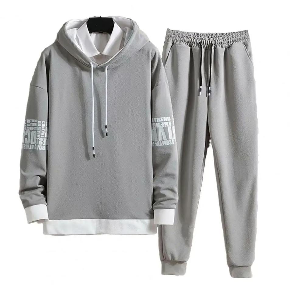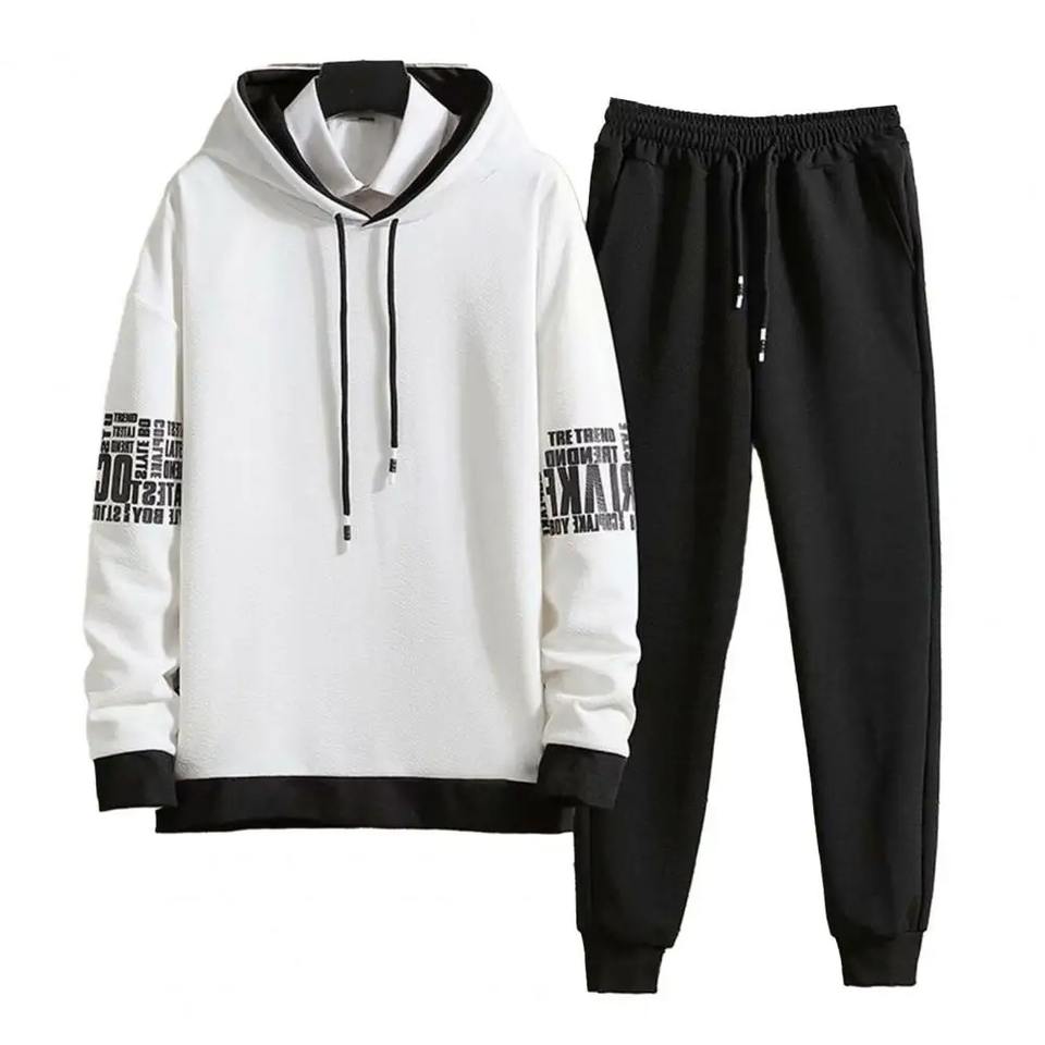 เซ็ตกางเกงสเวตเชิ้ตมีฮู้ดแบบบล็อกสีสำหรับผู้ชายชุดกางเกงวิ่งพร้อมพิมพ์ตัวอักษร