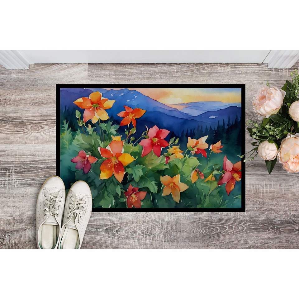 Colorado Rocky Mountain Columbine Watercolor Doormat Non-Slip Indoor Outdoor Entryway Rug 24H X 36W Low Pile Washable Door Mat