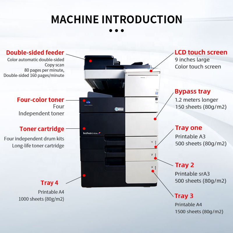 Paper capacity (80g/m2 paper):Tray 1/Tray 2: 500 sheets (maximum support SRA3)