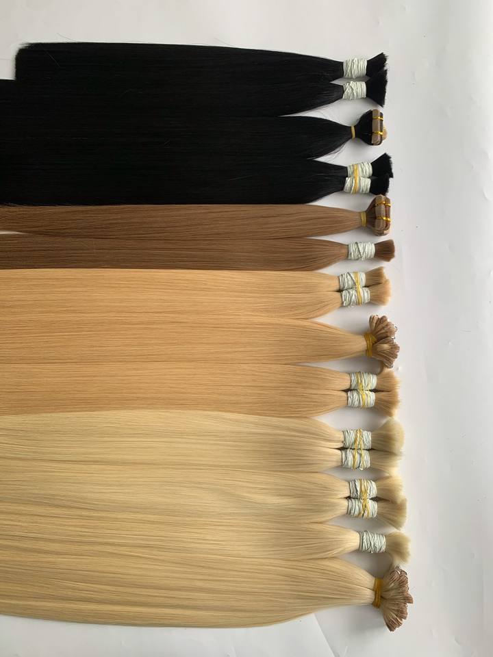 ผมต่อของมนุษย์ผมสีบลอนด์สีน้ำตาลจำนวนมาก