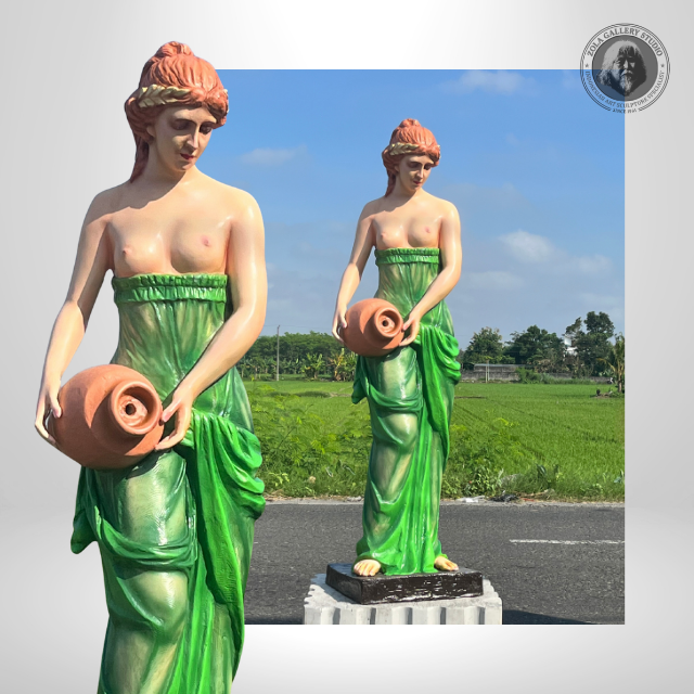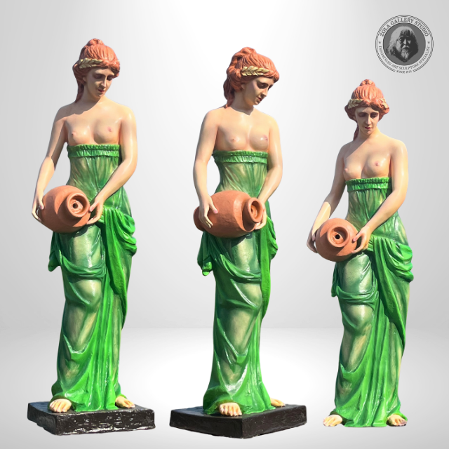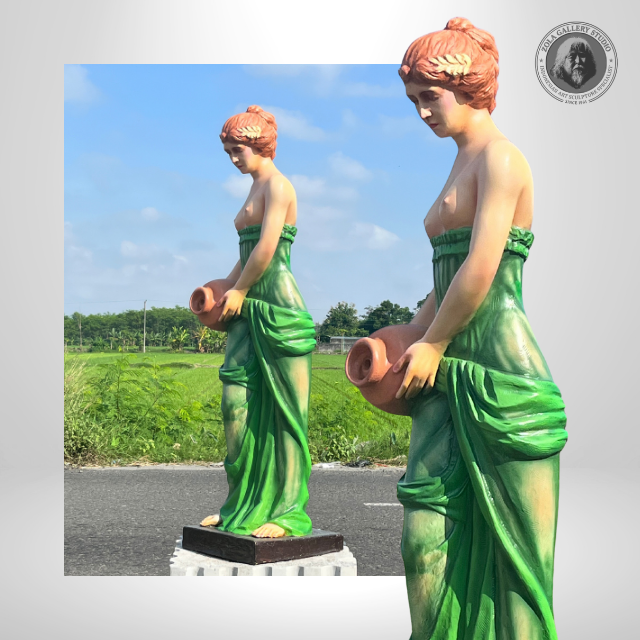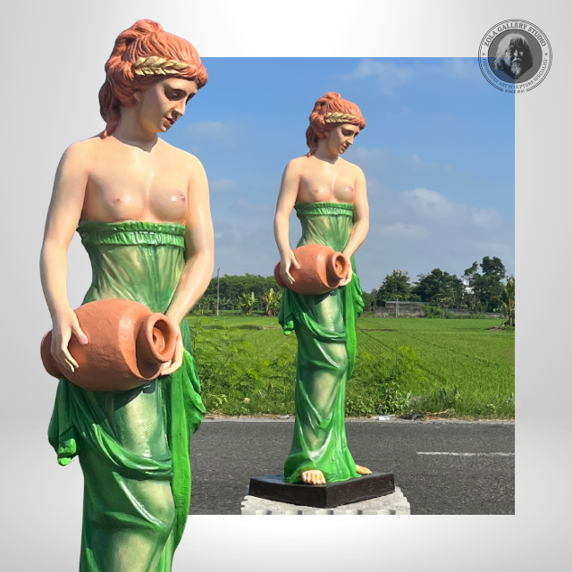 รูปปั้นคนถือน้ำแบบกรีกขนาด145ซม. ที่มีสีสันรูปปั้นทำจากเรซินไฟเบอร์ทาสีด้วยมือรูปปั้น Amphora ธีมคลาสสิกสำหรับการตกแต่งภายใน