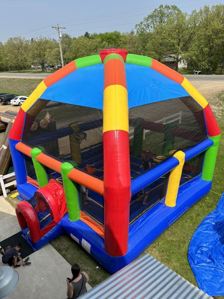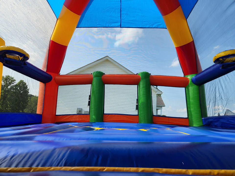 บ้านเด้งดึ๋งยักษ์22FT 22FT มีสีสันบ้านเด้งสีรุ้งพร้อมที่เป่าลม