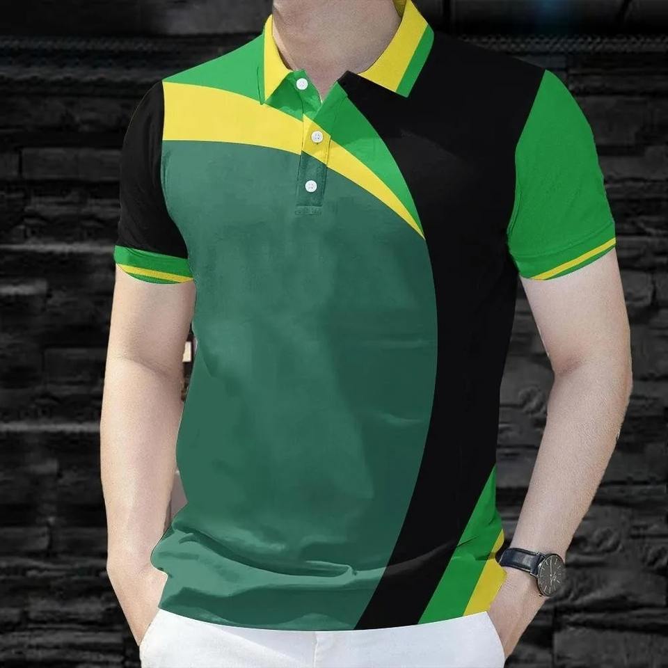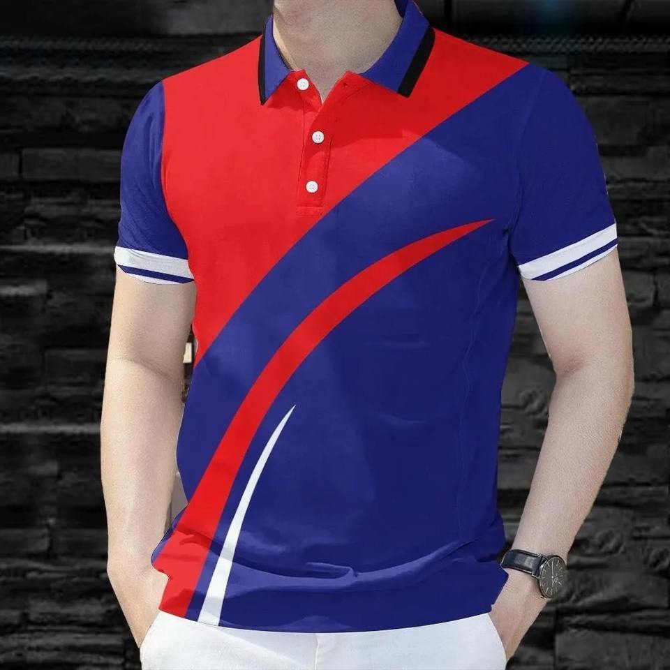 เสื้อโปโลผู้ชายลายทางหลากสีพิมพ์ลาย3D เสื้อยืดแขนสั้นเสื้อยืดกีฬาฤดูร้อน