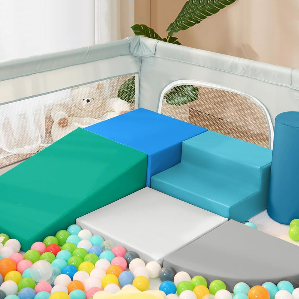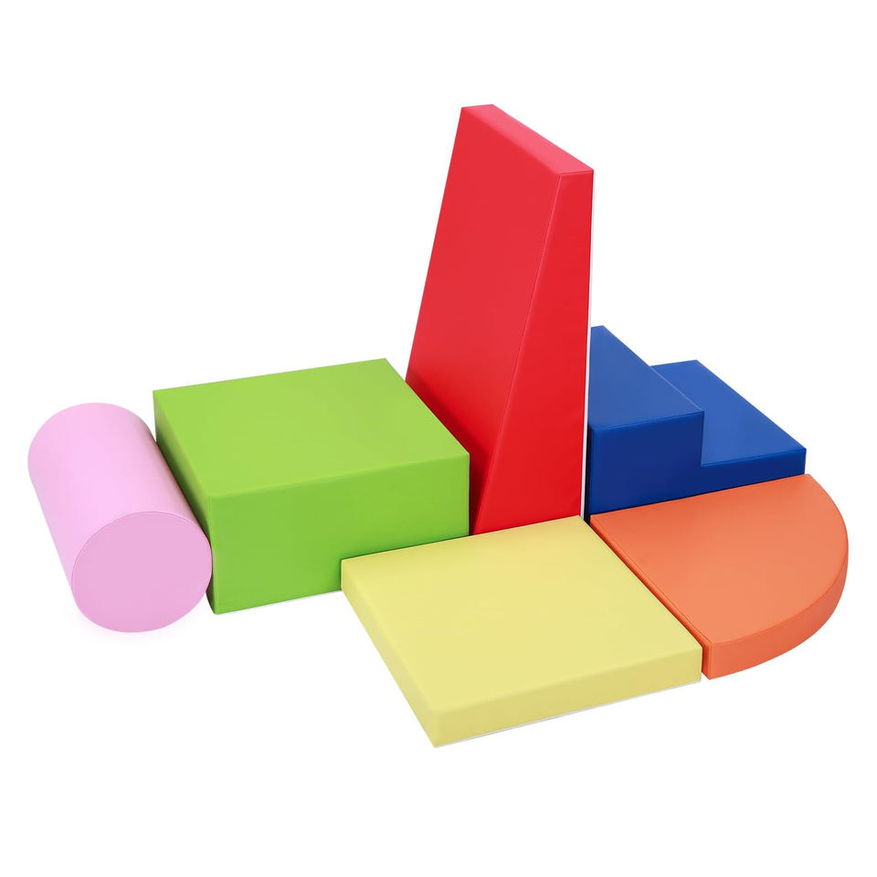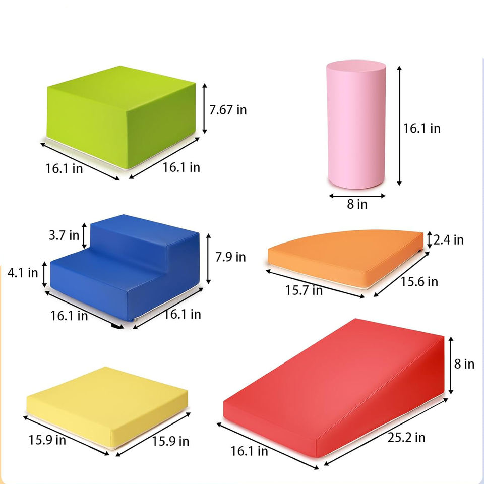 Colorful 6-Piece Soft Play Set PU Leather Foam Climbing Blocks with Slide for Home Kids' Crawling Activity Play Toys