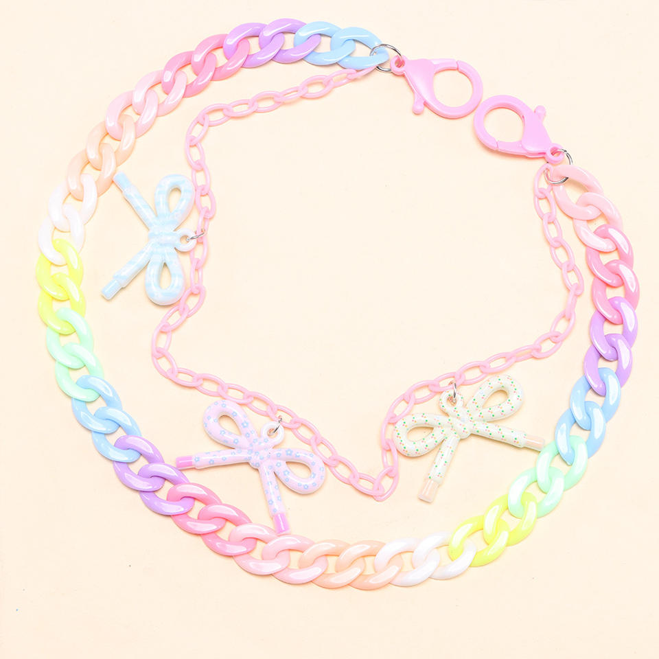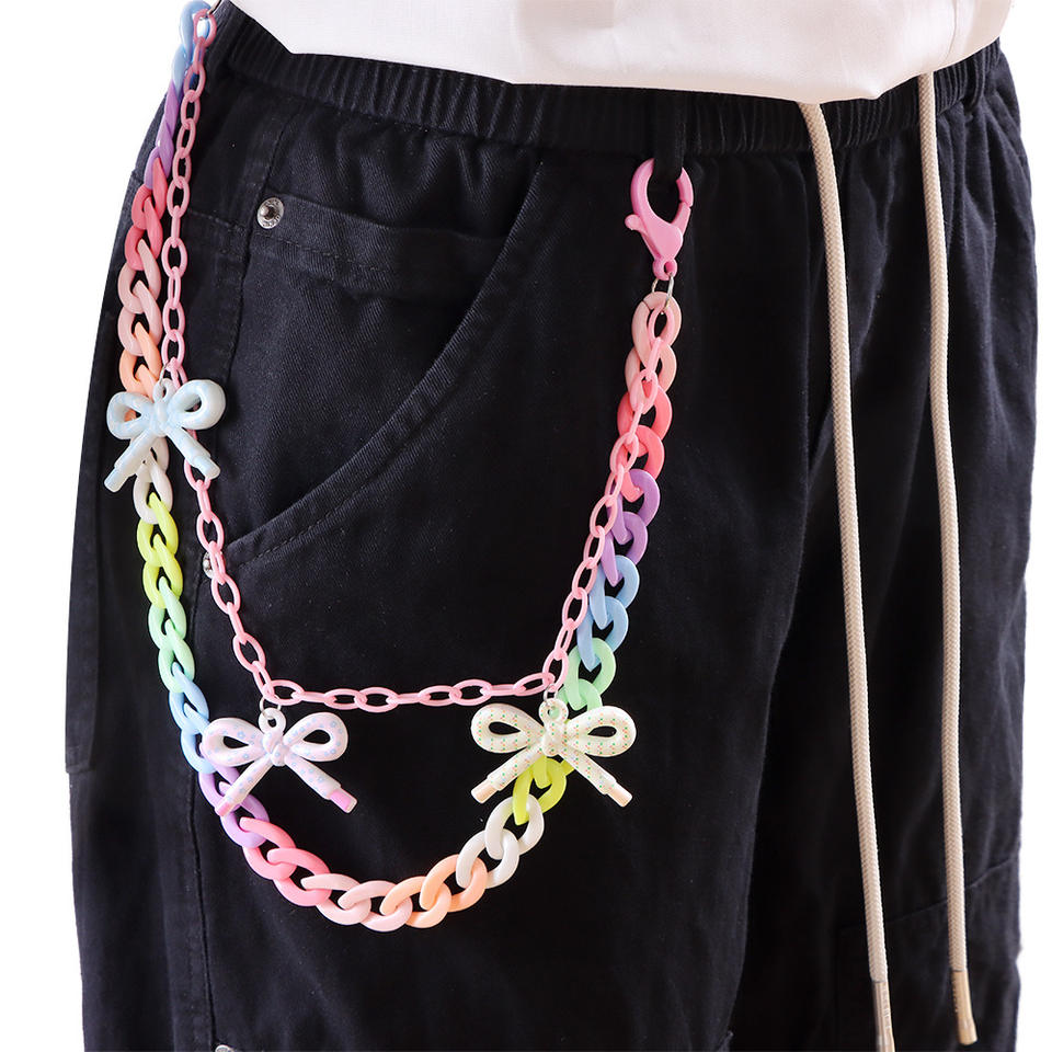 Colorful Acrylic Bow Waist Chain For Women Punk Style Nightclub Fashion Body Chain Multiple Laps Pink Bowknot Design