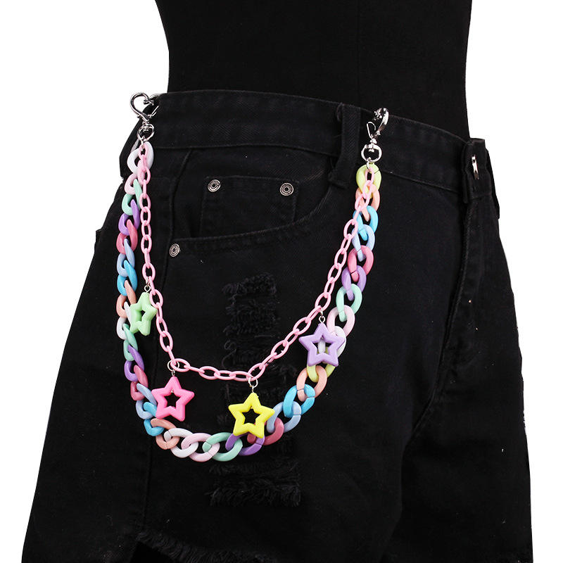สร้อยคาดเอวอะคริลิคสีสันสดใสรูปดาวสำหรับผู้หญิง สไตล์พังก์ แฟชั่นสำหรับออกงานกลางคืน โทนสีมาการอง หลายห่วง