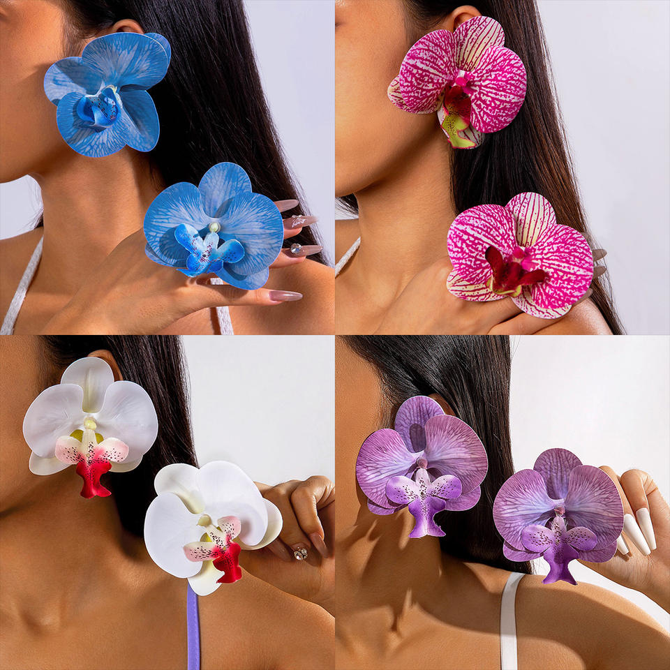 ต่างหูดอกไม้ประดิษฐ์หลากสีต่างหูดอกไม้ขนาดใหญ่อ่อนโยนสำหรับวันวาเลนไทน์เครื่องประดับสตรีขายส่ง N2412162