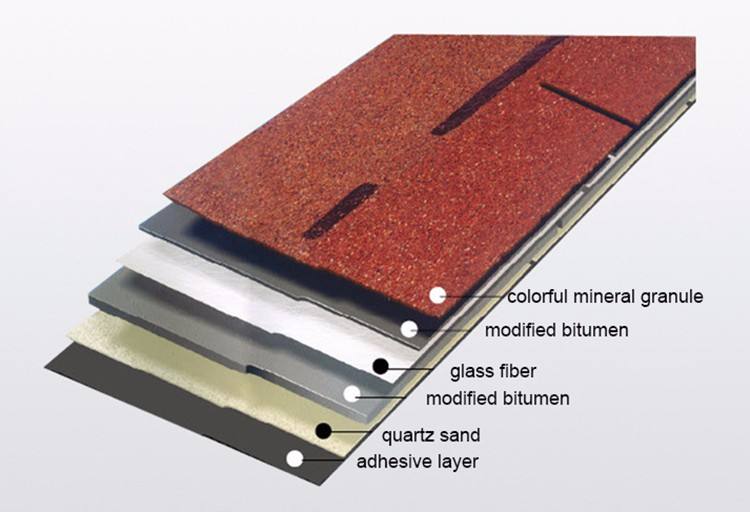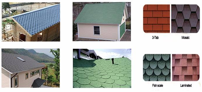 กระเบื้องมุงหลังคาแอสฟัลต์หลากสีพร้อมแกนใยแก้วกันน้ำสำหรับโกดังและบ้านพักตากอากาศ