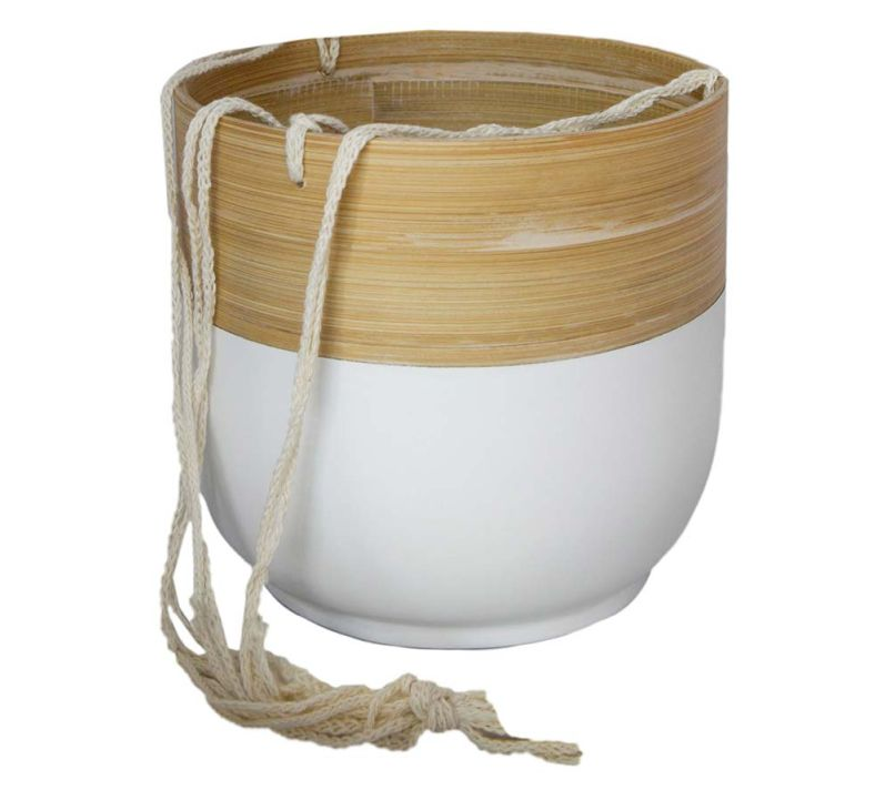 กระถางต้นไม้แขวนทำจากไม้ไผ่หลากสีพร้อมเชือกตกแต่ง กระถางปลูกต้นไม้ในร่มทำจากไม้ไผ่สำหรับขายส่ง