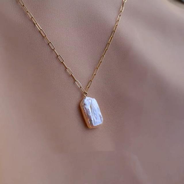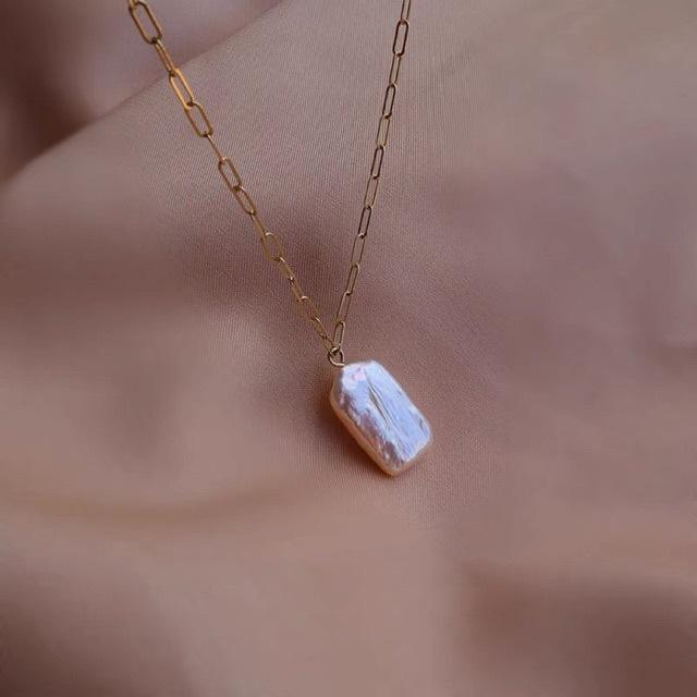 สร้อยคอมุกเม็ดเดี่ยวสไตล์บาโรกสีสันสดใสสำหรับผู้หญิง ดีไซน์หรูหราแบบย้อนยุค พร้อมจี้รูปทรงบล็อก แรงบันดาลใจจากลูกกวาด