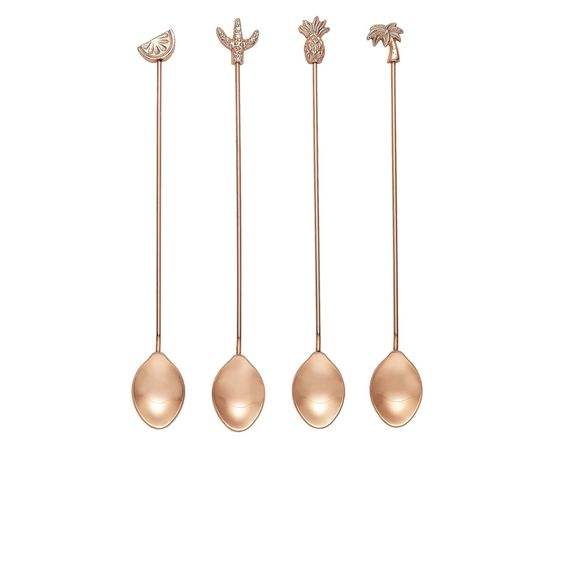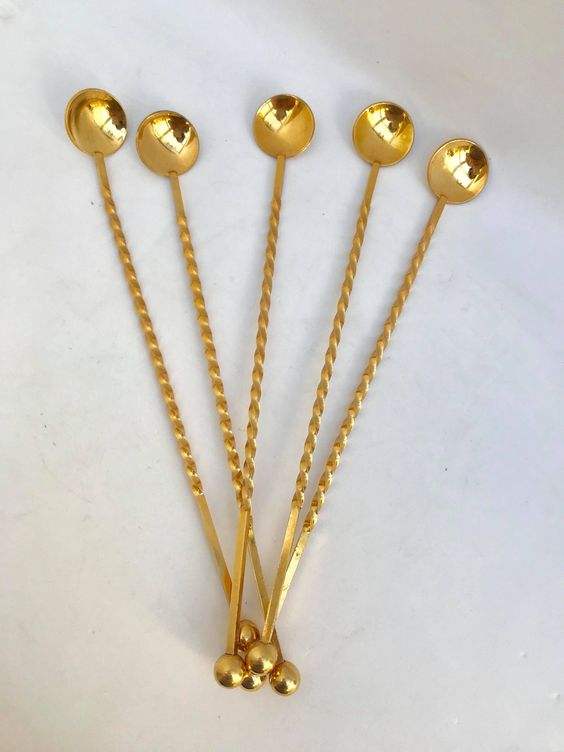 ชุดบาร์เทนเดอร์หลากสีช้อนคนทำจากสแตนเลสผสมเครื่องดื่มไวน์ค็อกเทลช้อนกวนปลายหยดน้ำช้อนทองพร้อมด้ามบิด