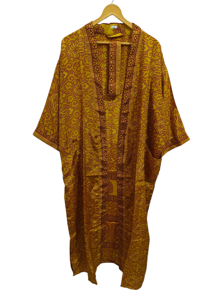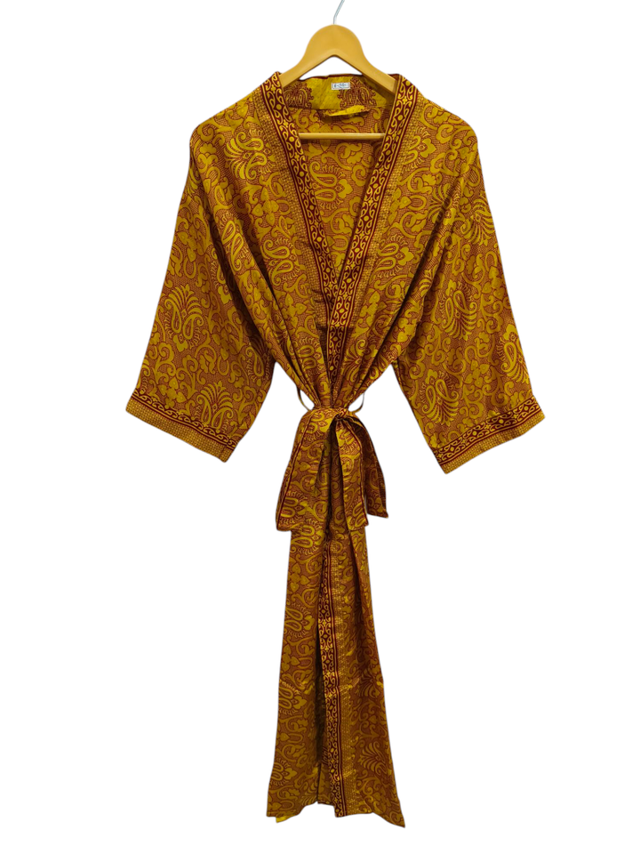 ชุดคลุมอาบน้ำชุดกิโมโนนุ่มใส่กลางคืนสีสันสดใสชุดคลุมยาวทำด้วยมือชุดผ้าไหมส่าหรีสไตล์อินเดียวินเทจ