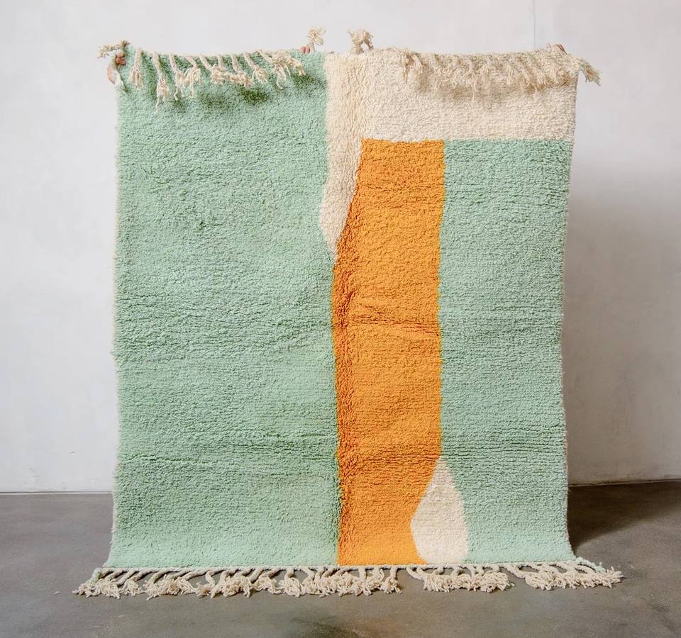 พรมขนสัตว์โมร็อกโกทำมือสีสันสดใส แบรนด์เบนิ มีร์ริท พรมโมร็อกโกทอมือ ตกแต่งบ้านด้วยผ้าปอกระเจา ผลิตตามสั่ง (OEM)