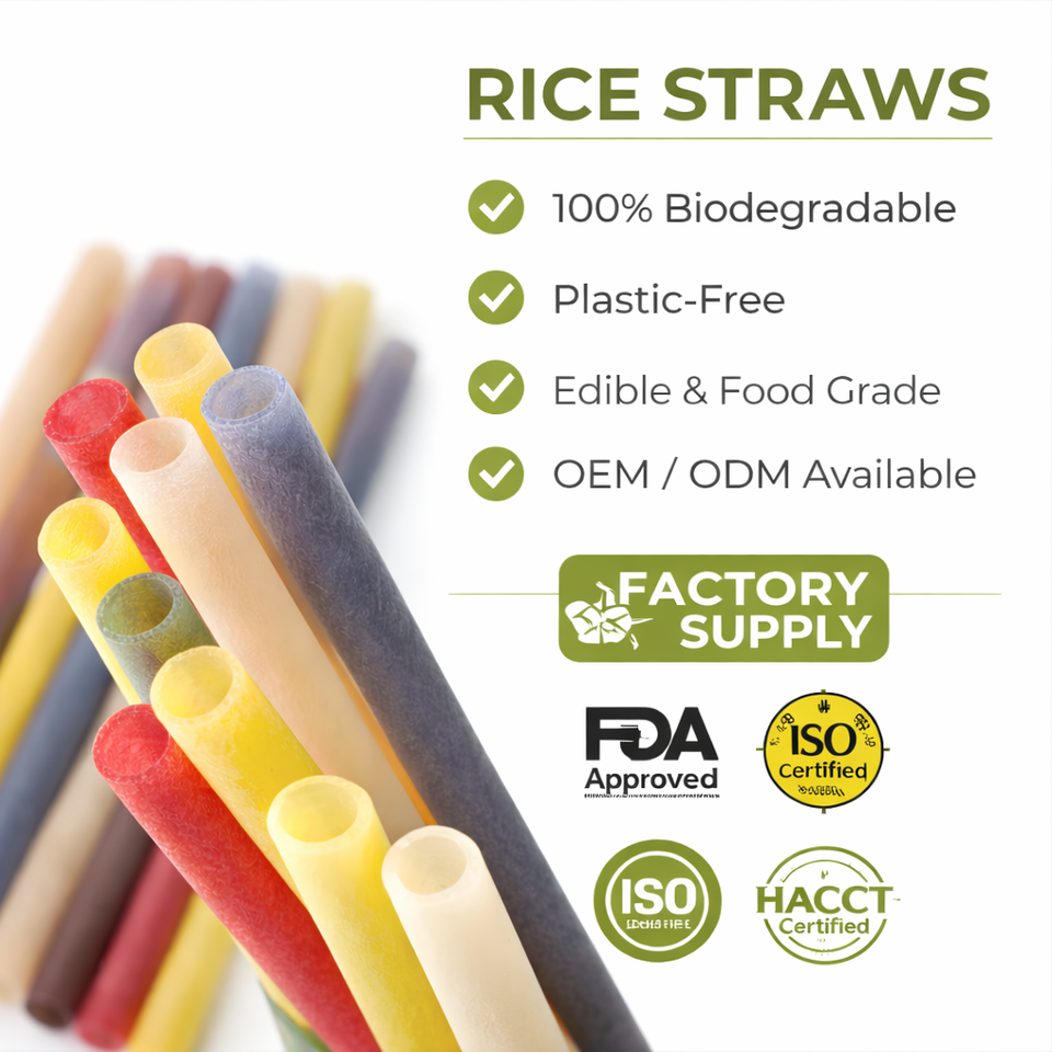หลอดข้าวหลากสี ย่อยสลายได้ ปลอดภัยสำหรับอาหาร ใช้สำหรับงานปาร์ตี้และเครื่องดื่มเย็น