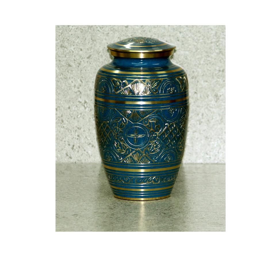 ชื่อผลิตภัณฑ์:โกศแกะสลักรูปดอกไม้สีฟ้า