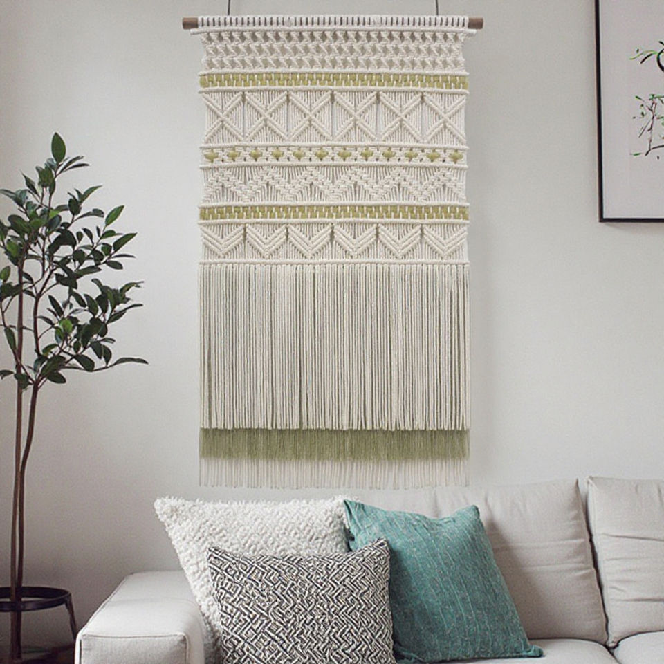 พรมแขวนตกแต่งบ้านผนังห้องนั่งเล่นการตกแต่งด้วยลวดลายศิลปะแบบโบฮีเมียนทอมือหลากสี