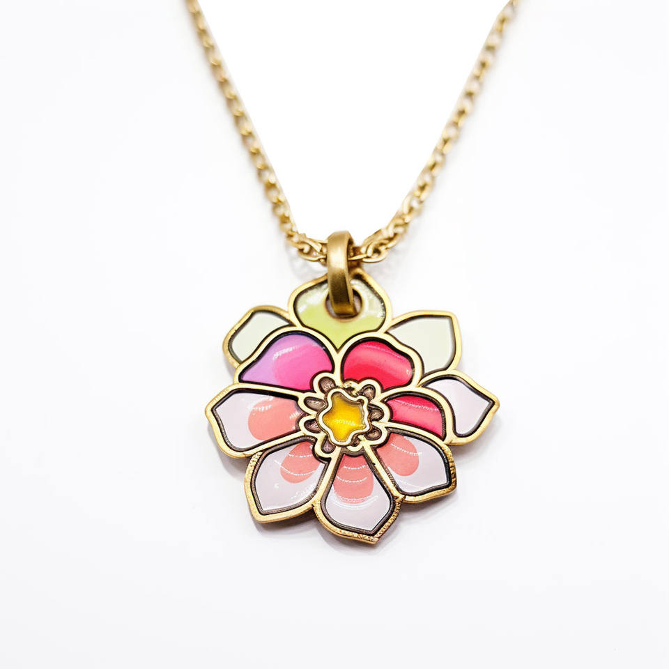 สร้อยคอเคลือบโลโก้ตามสั่งลายดอกไม้วันเกิดสีสันสดใส
