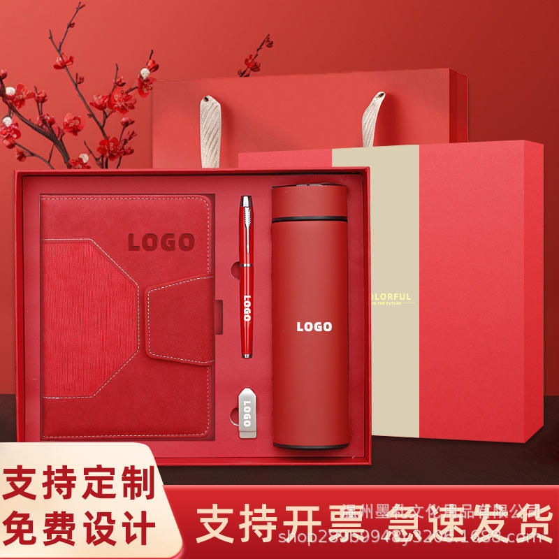 ชุดของขวัญธุรกิจสีสันสดใส สมุดโน้ตหนัง PU พร้อมปากกาและกระติกน้ำ สามารถพิมพ์โลโก้ได้ตามต้องการ เหมาะสำหรับของขวัญองค์กร