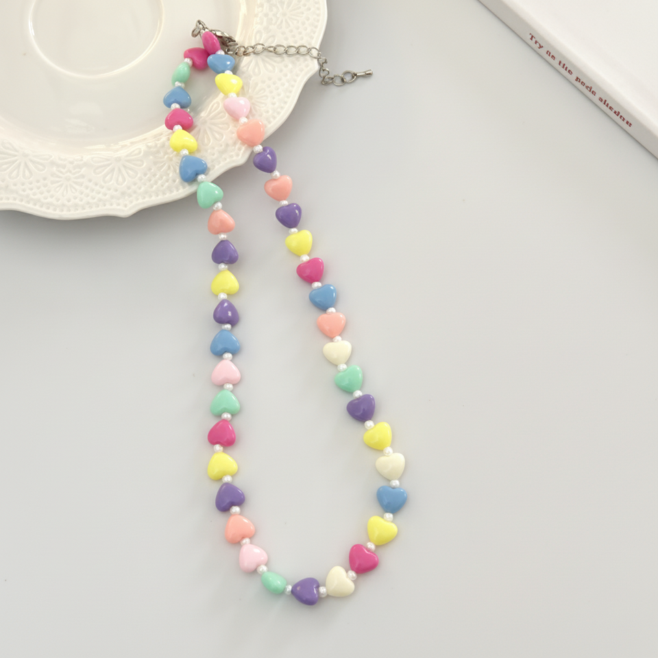 สร้อยคอลูกกวาดสีสันสดใสสร้อยคอดีไซน์เฉพาะกลุ่มเสื้อสเวตเตอร์แฟชั่นแนวหวานพร้อมธีมความรักแบบเปอร์เซีย