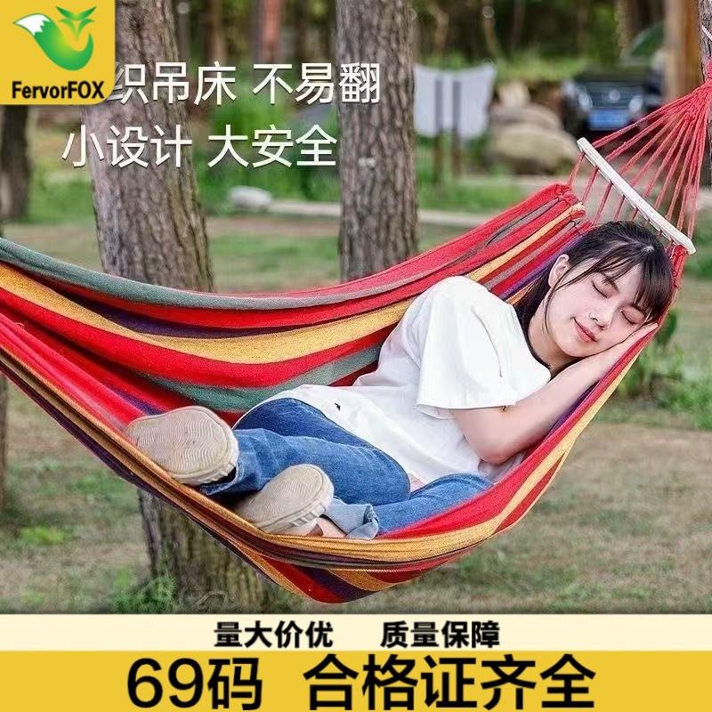 เปลญวนผ้าใบหลากสีสันสำหรับตั้งแคมป์กลางแจ้ง ป้องกันการล้ม ดีไซน์เรียบง่าย ผลิตที่เจ้อเจียง
