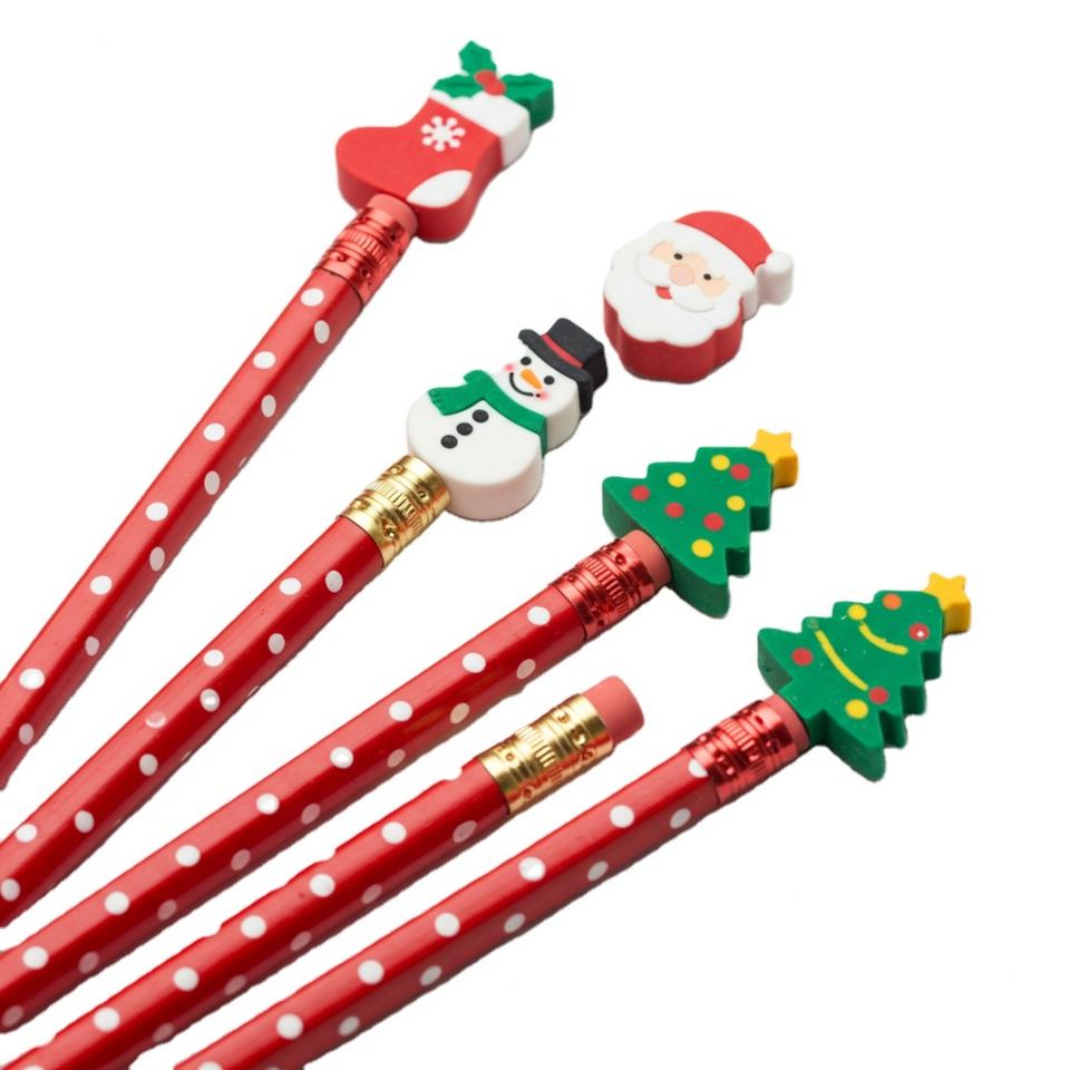 ดินสอสีสันสดใสสำหรับคริสต์มาส แบบมาตรฐาน HB พร้อมยางลบไม้และพลาสติก ของขวัญสำหรับโรงเรียนและสำนักงาน ยินดีต้อนรับ