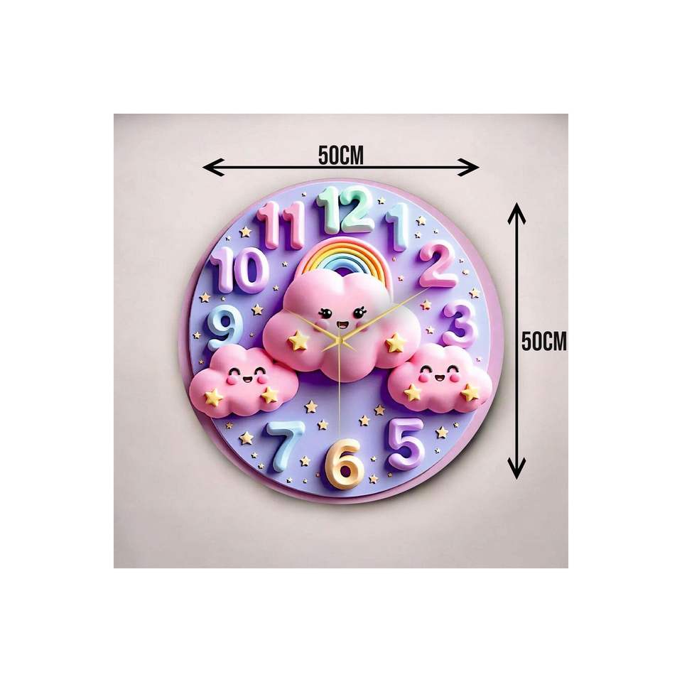 นาฬิกาแขวนผนังโต๊ะไม้รูปแบบเมฆสีสันสดใสขนาด50ซม. นาฬิกาแขวนผนังโต๊ะเงียบพร้อมจำนวนและของขวัญสำหรับห้องเด็ก