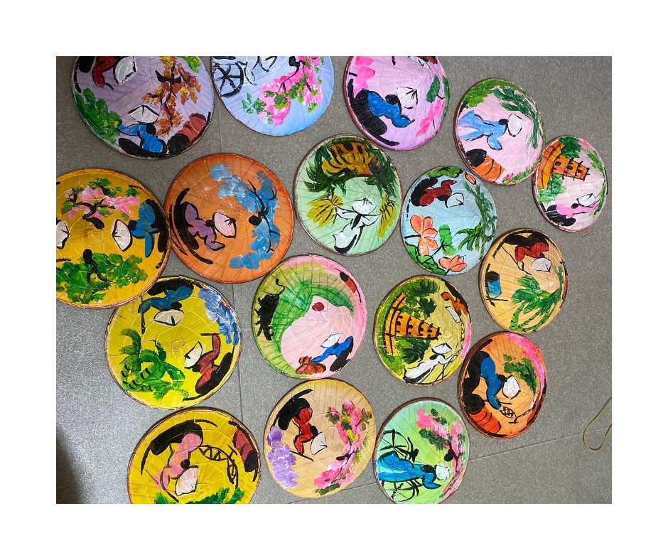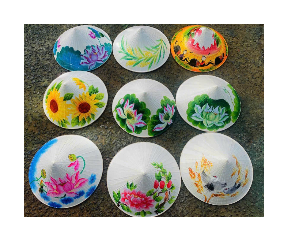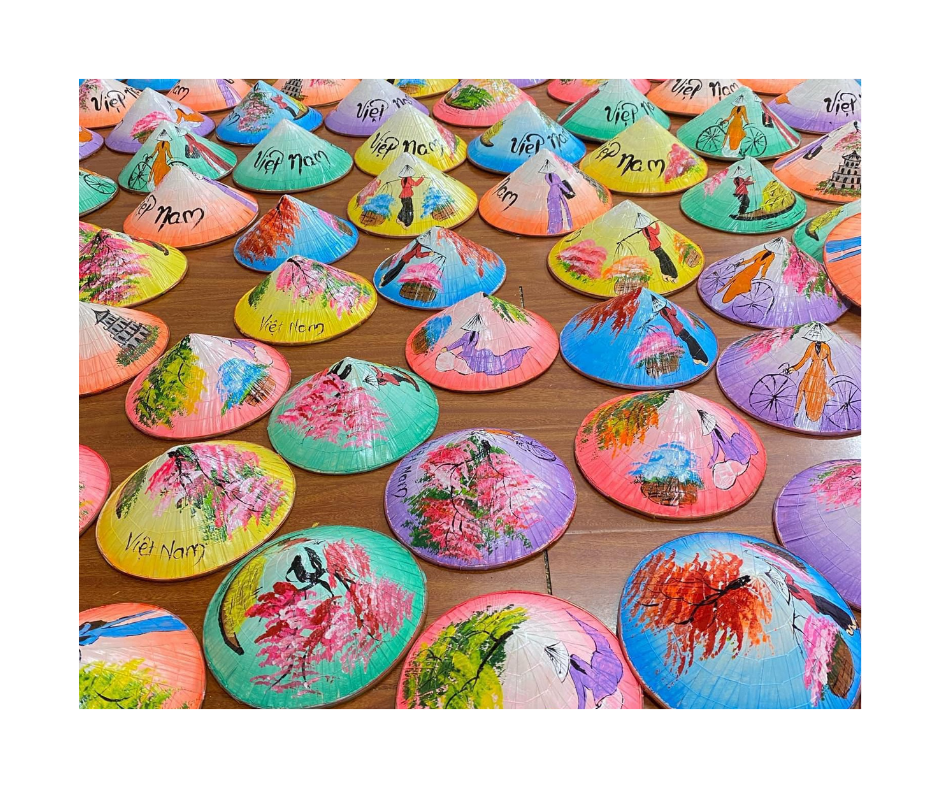 หมวกทรงกรวยหลากสีจากหมู่บ้านหัตถกรรมเวียดนามหมวกทรงกรวยสำหรับผู้ซื้อจำนวนมากสำหรับเป็นของขวัญและร้านขายของที่ระลึก