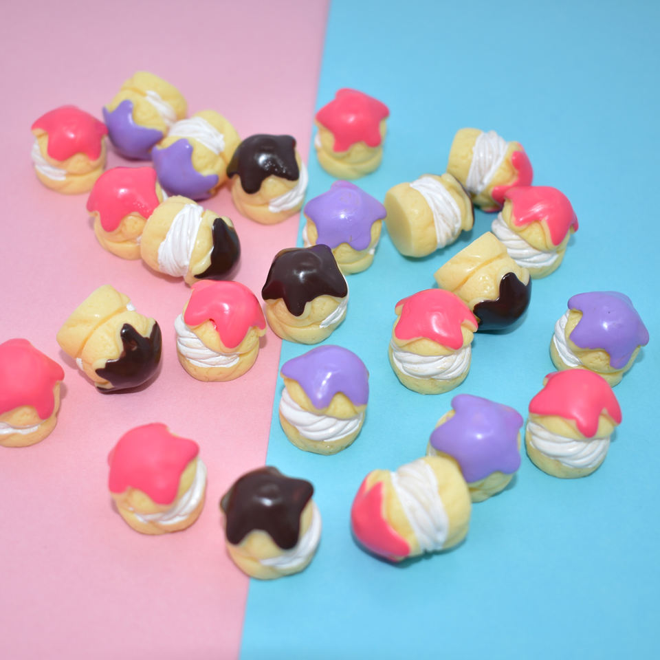 เรซิ่นรูปขนมเค้กสีสันสดใส ขนมปังน่ารักแบบแบน สำหรับตกแต่ง DIY อุปกรณ์เสริมอาหารจำลอง เรซิ่นคาโบชองรูปอาหาร