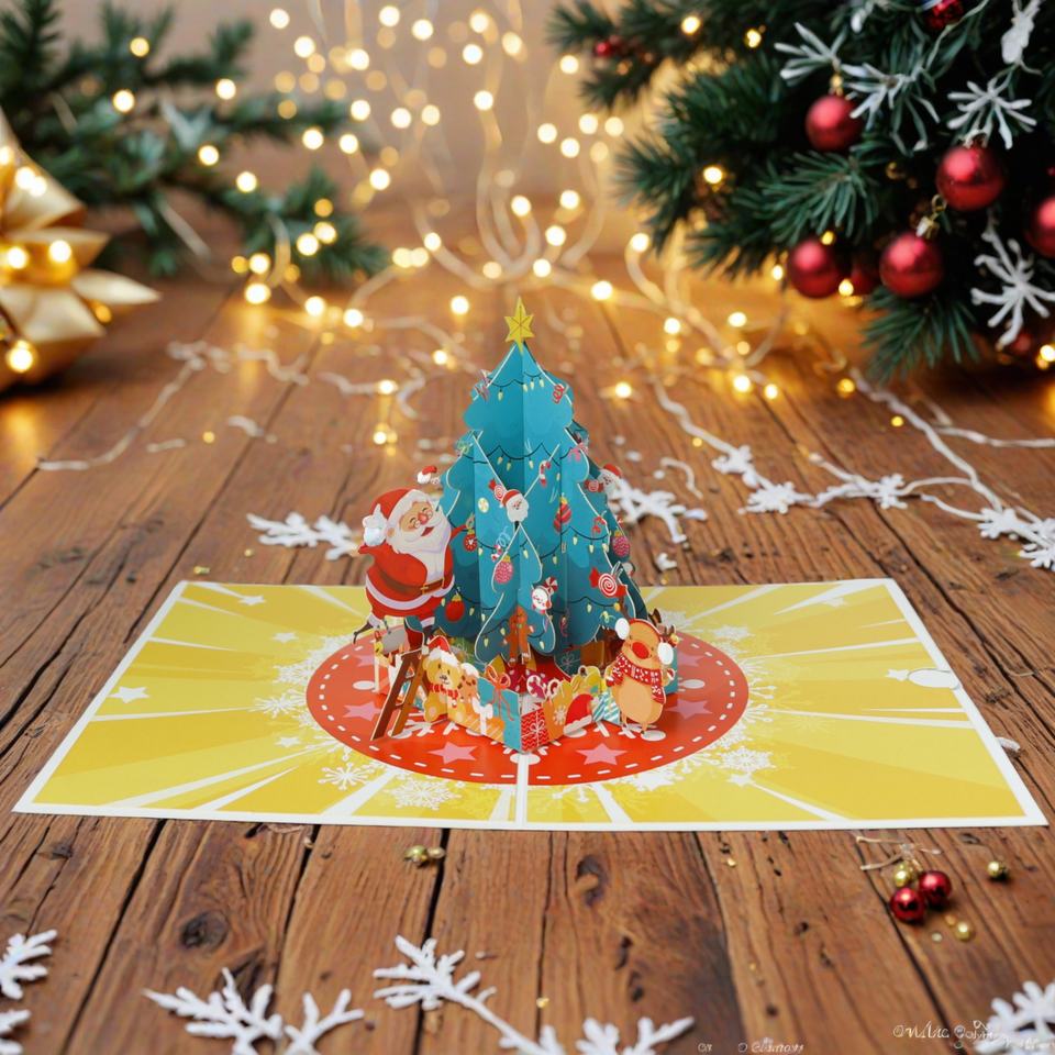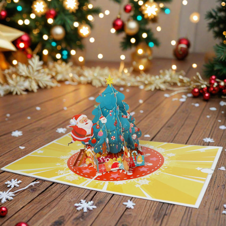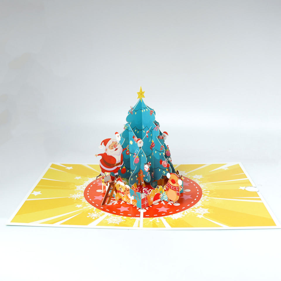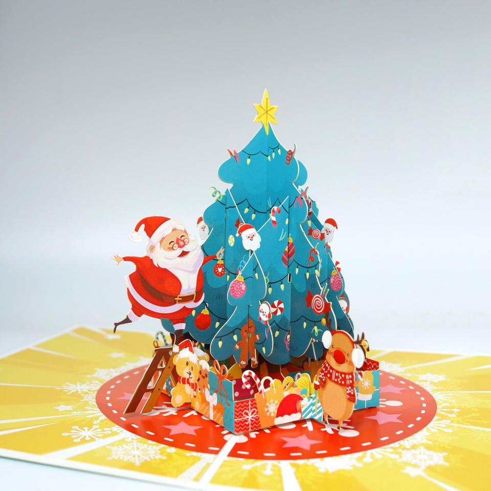 การ์ด3D สุดสร้างสรรค์สีสันสดใสรูปซานตาคลอสปีนป่ายต้นคริสต์มาสเพื่อตกแต่งของขวัญการ์ดอวยพรป๊อปอัป3D แบบกางออก