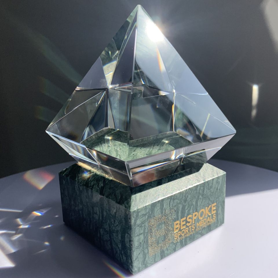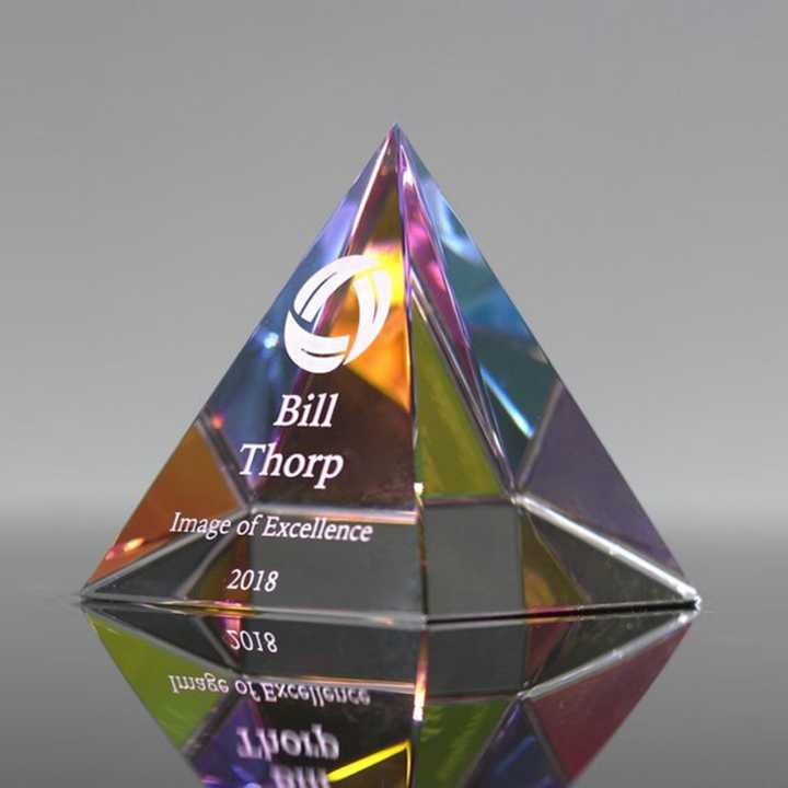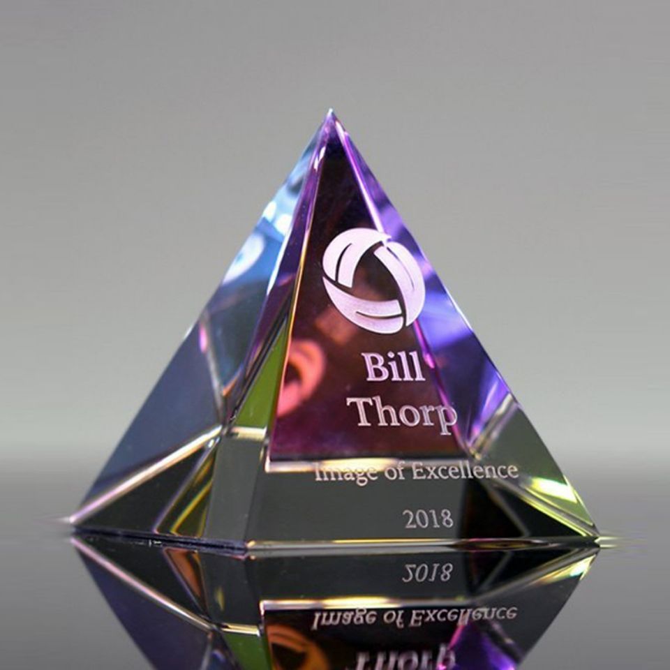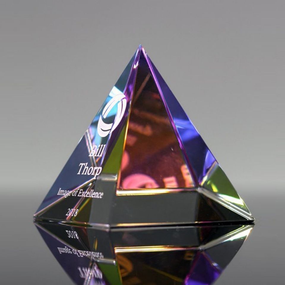 รางวัลของขวัญของที่ระลึกการแข่งขันทางธุรกิจถ้วยรางวัลพีระมิดคริสตัลสีสันสดใสสั่งทำได้ตามต้องการ