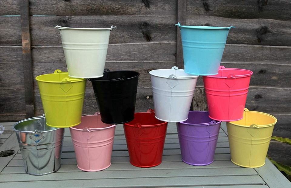 ที่มีสีสันตกแต่งสวนดอกไม้ถังและภาชนะเก็บ