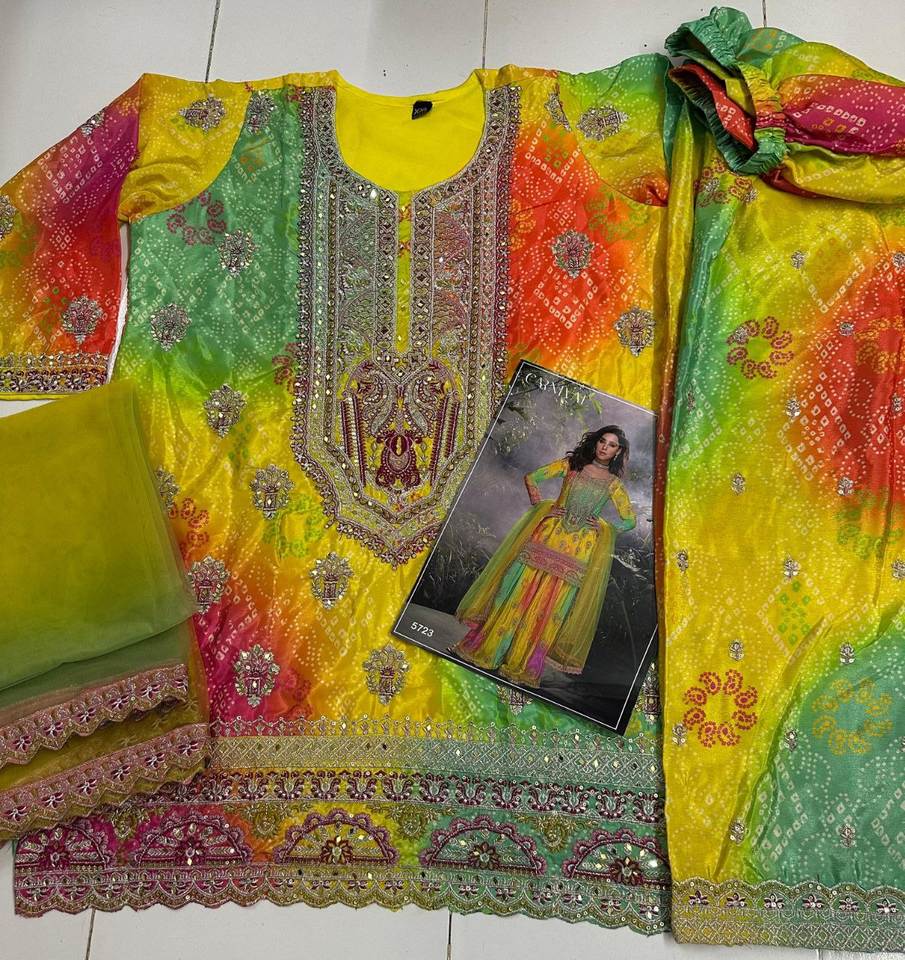 ชุดซาลวาร์สามชิ้นสำหรับผู้ใหญ่ผ้าชินอนดีไซน์สีสันสดใส