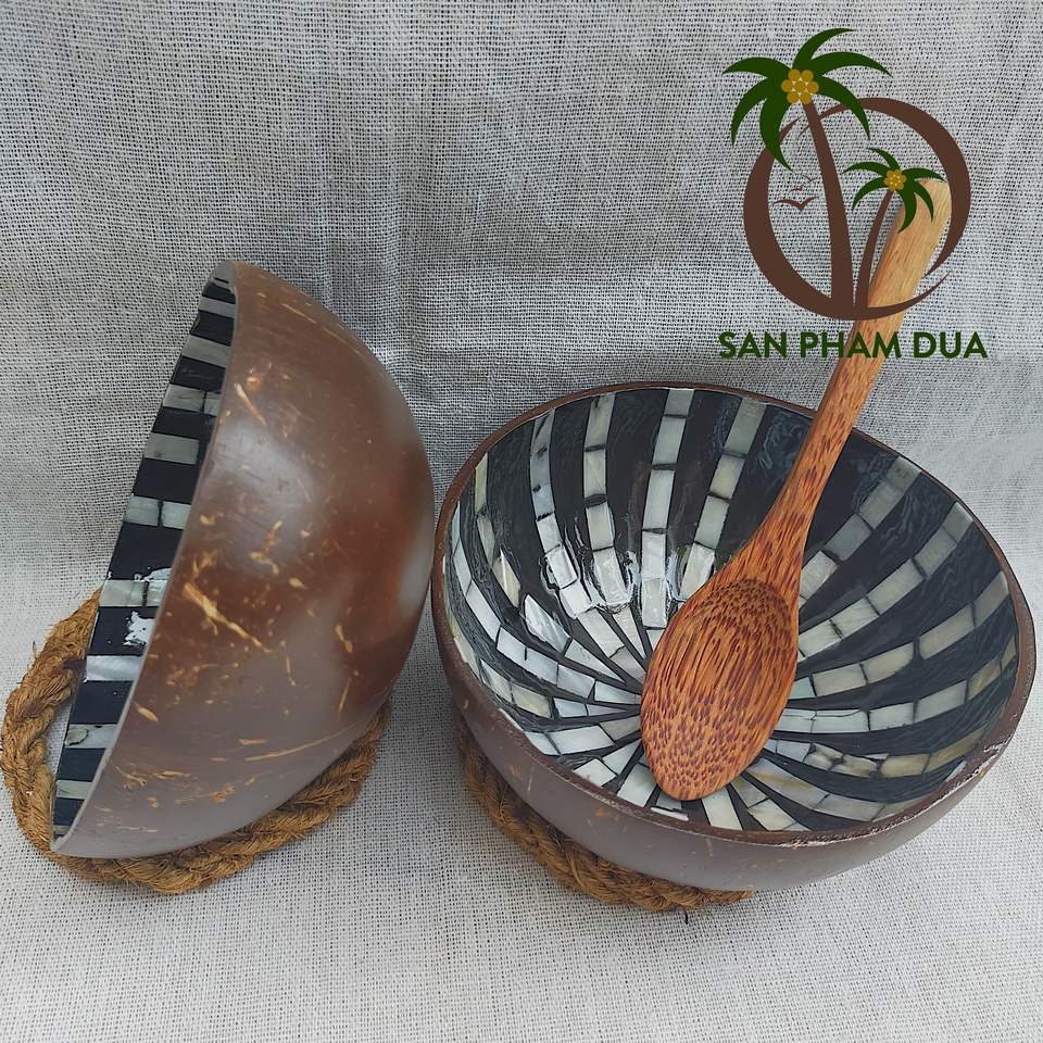 ชามกะลามะพร้าวหลากรุ่นชุดช้อนที่แข็งแรงและมั่นคงชามมะพร้าวเคลือบแล็คเกอร์ปลอดภัยสำหรับอาหาร