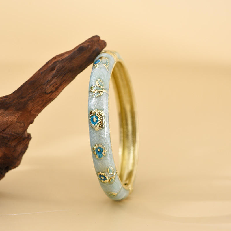 กำไลข้อมือเด็กทำจากโลหะผสมเคลือบสีสันสดใส ลายดอกไม้แบบดั้งเดิม กำไลเคลือบแบบโคลอซอนน์ กำไลแบบเปิดสำหรับเครื่องประดับแฟชั่น