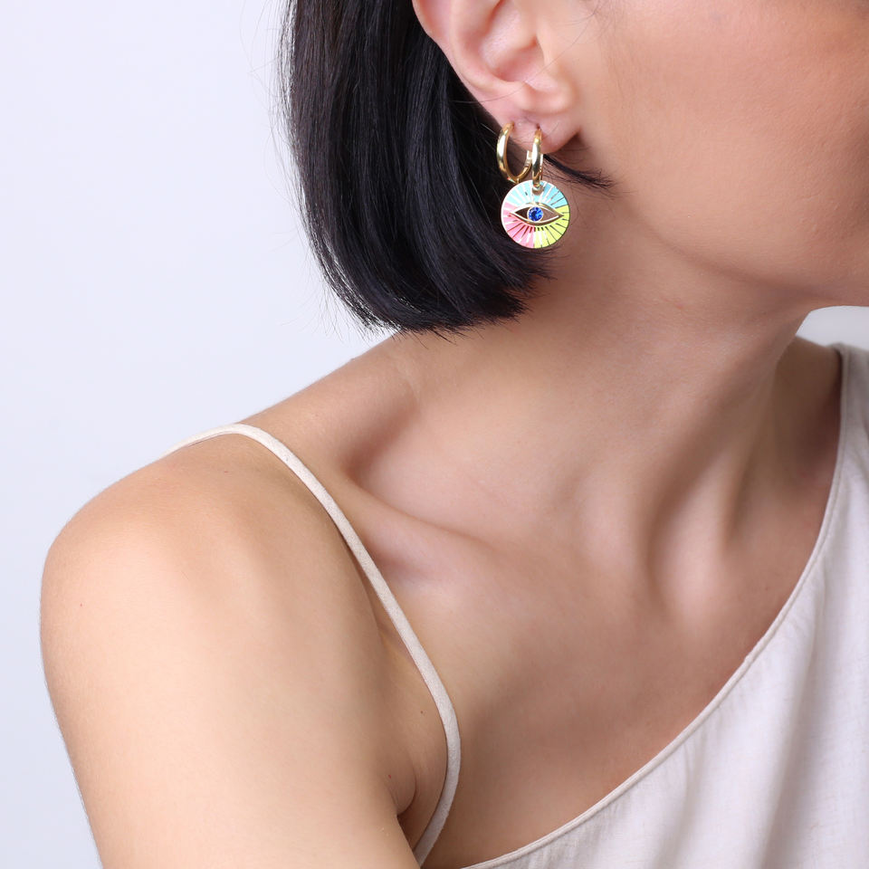 การออกแบบที่มีสีสันรอบต่างหูห้อยเครื่องประดับตุรกีขายส่ง925เครื่องประดับเงินสเตอร์ลิง