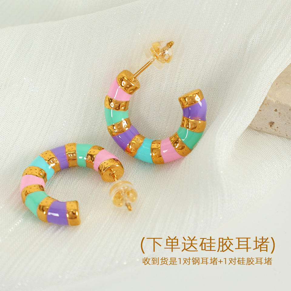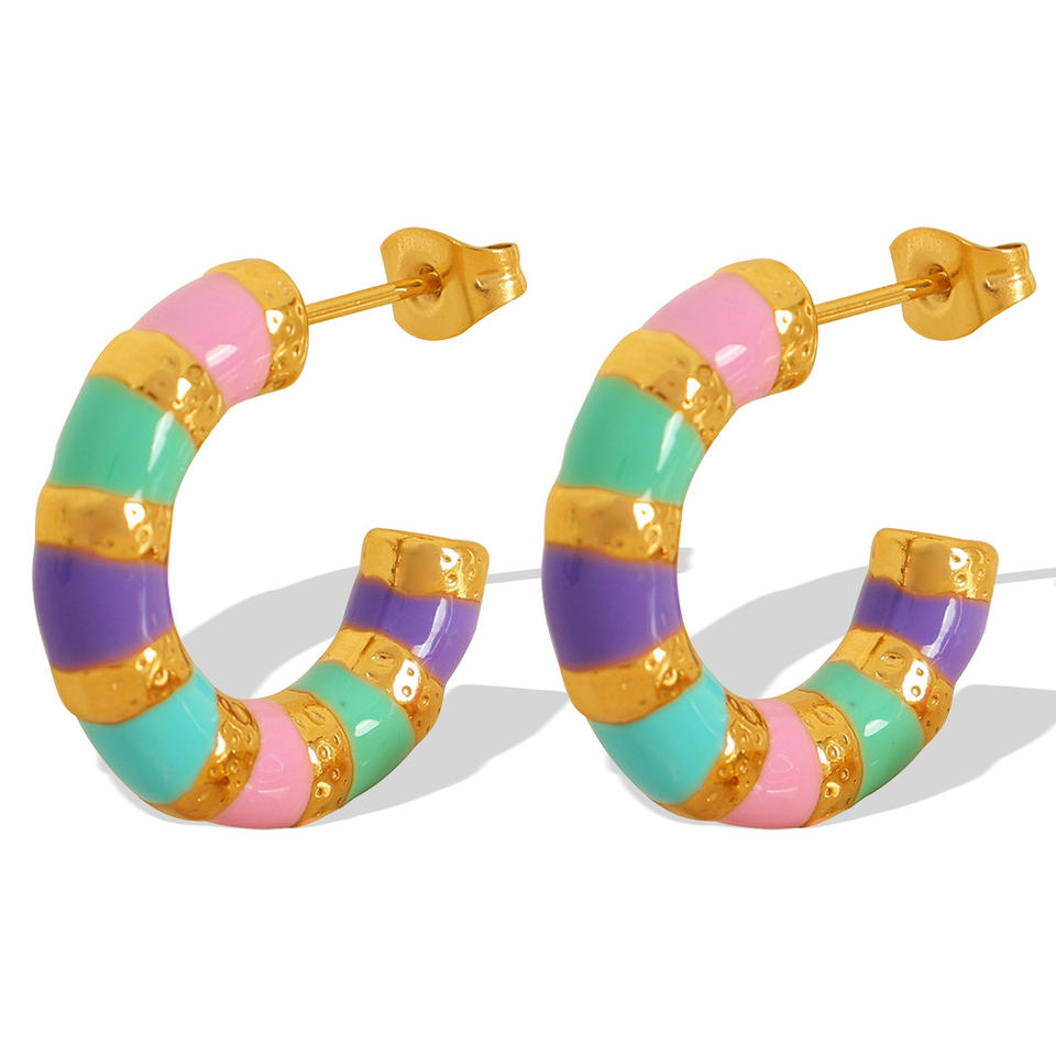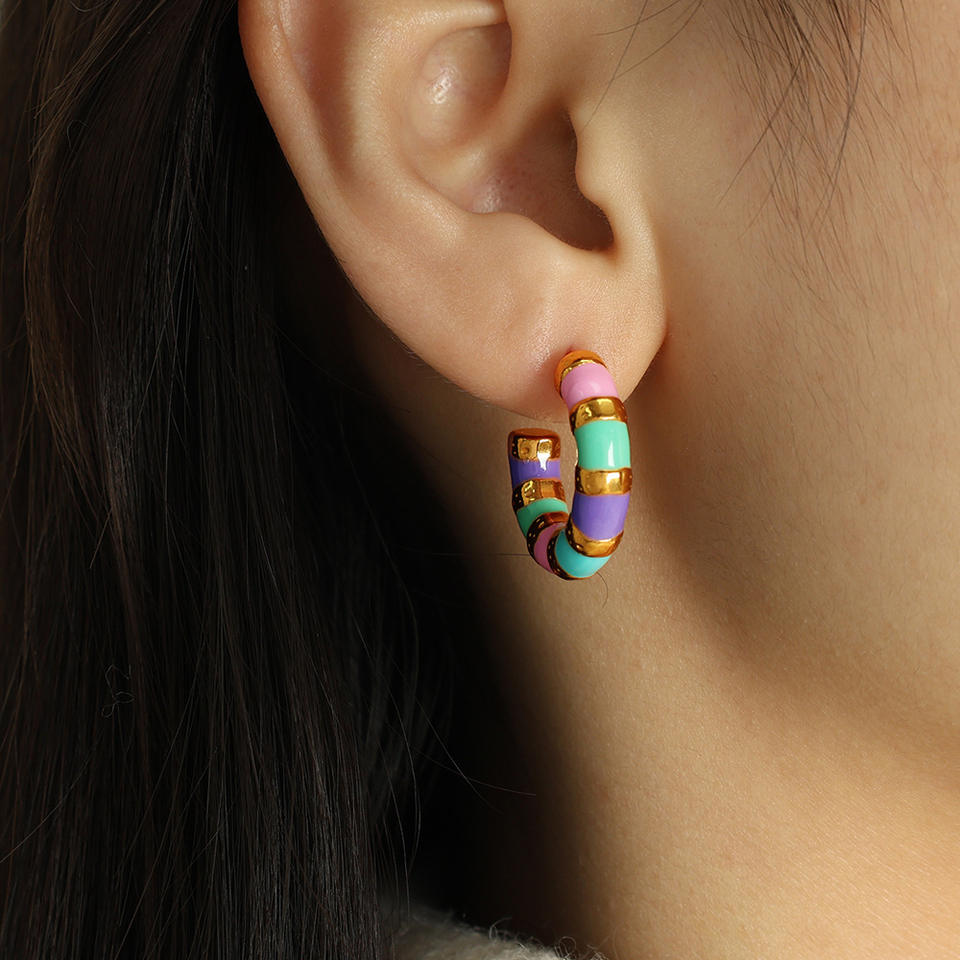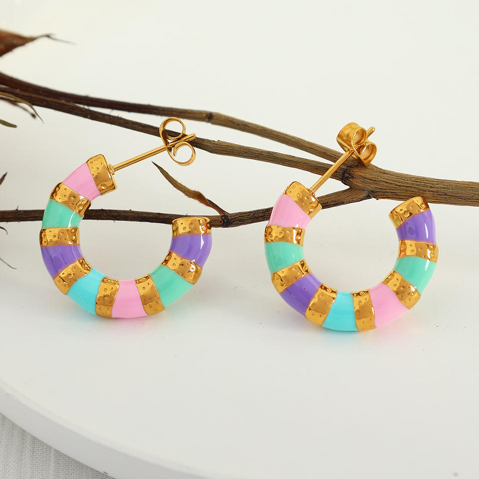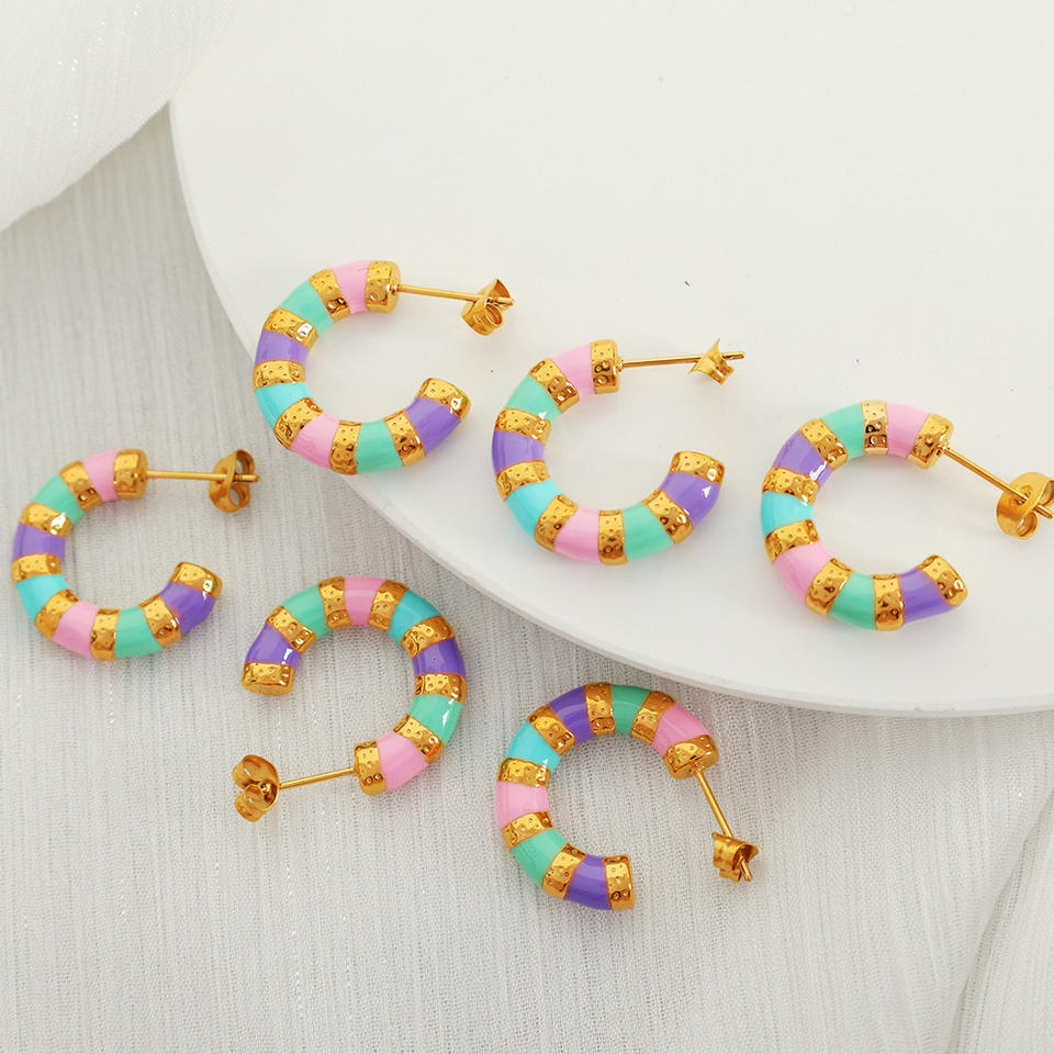 ต่างหูห่วงอีพ็อกซี่สีสันสดใสโลหะผสมสังกะสีรูปตัว U การออกแบบทางเรขาคณิตสำหรับงานปาร์ตี้เครื่องประดับแฟชั่นสตรี EH333