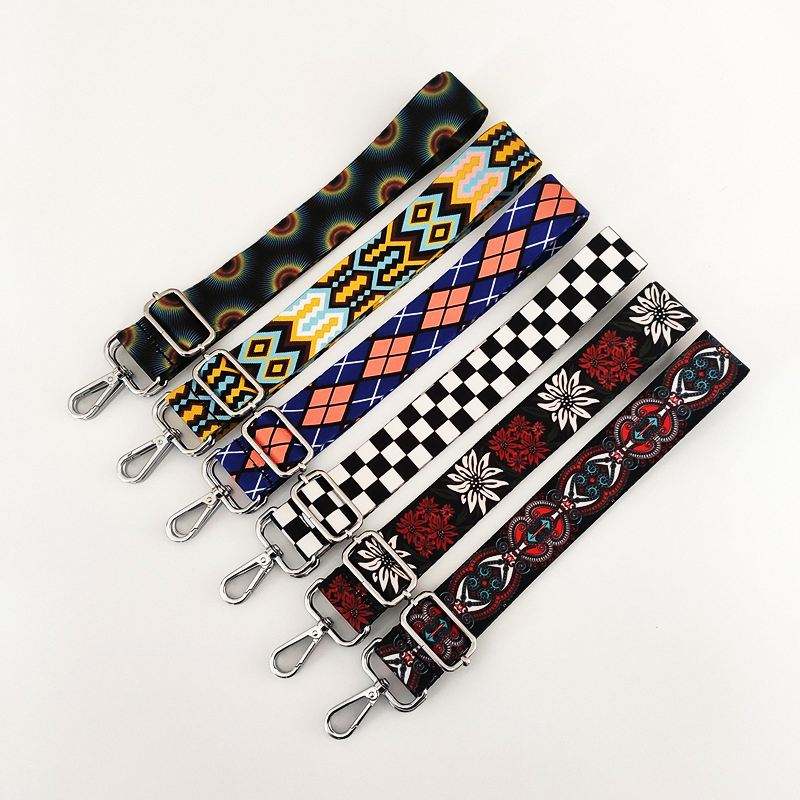 กระเป๋าพิมพ์ลายกว้างสไตล์ชนเผ่าสีสันสดใสกระเป๋าผู้หญิงอุปกรณ์เสริมกระเป๋าคาดไหล่สายยาวปรับได้