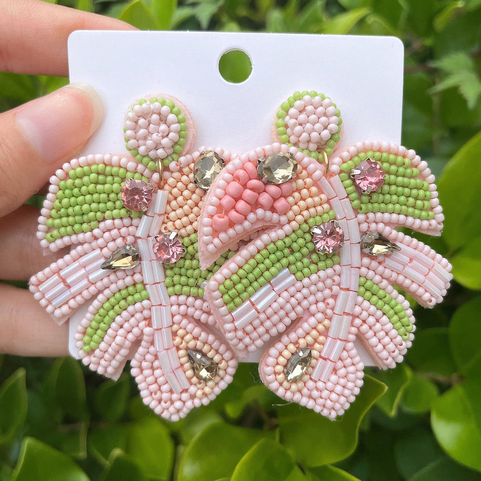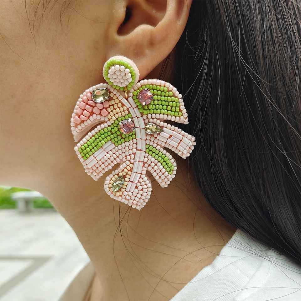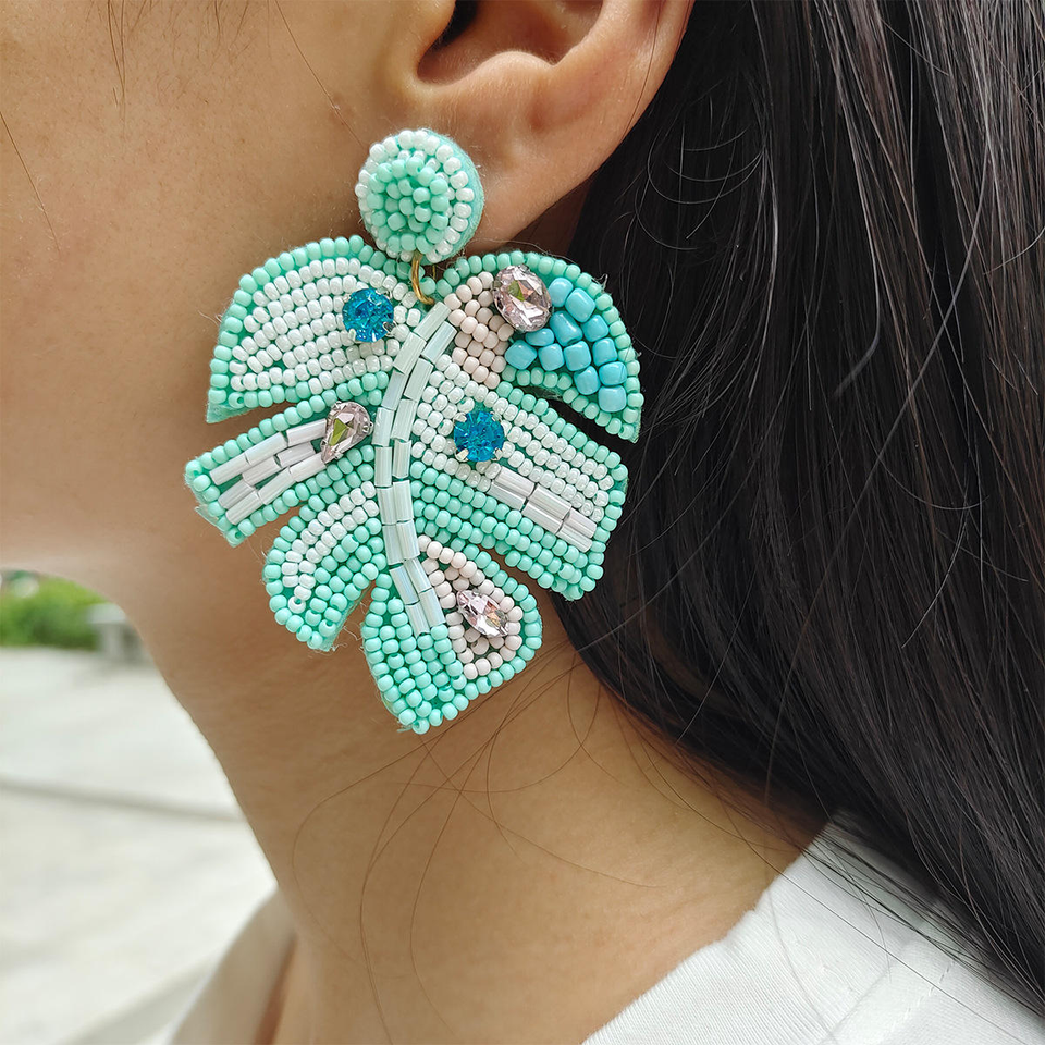 ต่างหูแฟชั่นผู้หญิงสีสันสดใสต่างหูลูกปัดทำด้วยมือต่างหูลูกปัดหิน CZ ต่างหูลูกปัดรูปใบไม้
