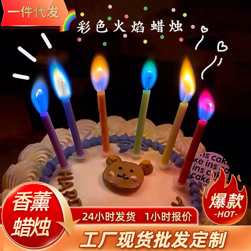เทียนวันเกิดเปลวไฟหลากสี 6 แพ็ค ทรงกระบอก พาราฟิน ตกแต่งงานปาร์ตี้สุดอินเทรนด์