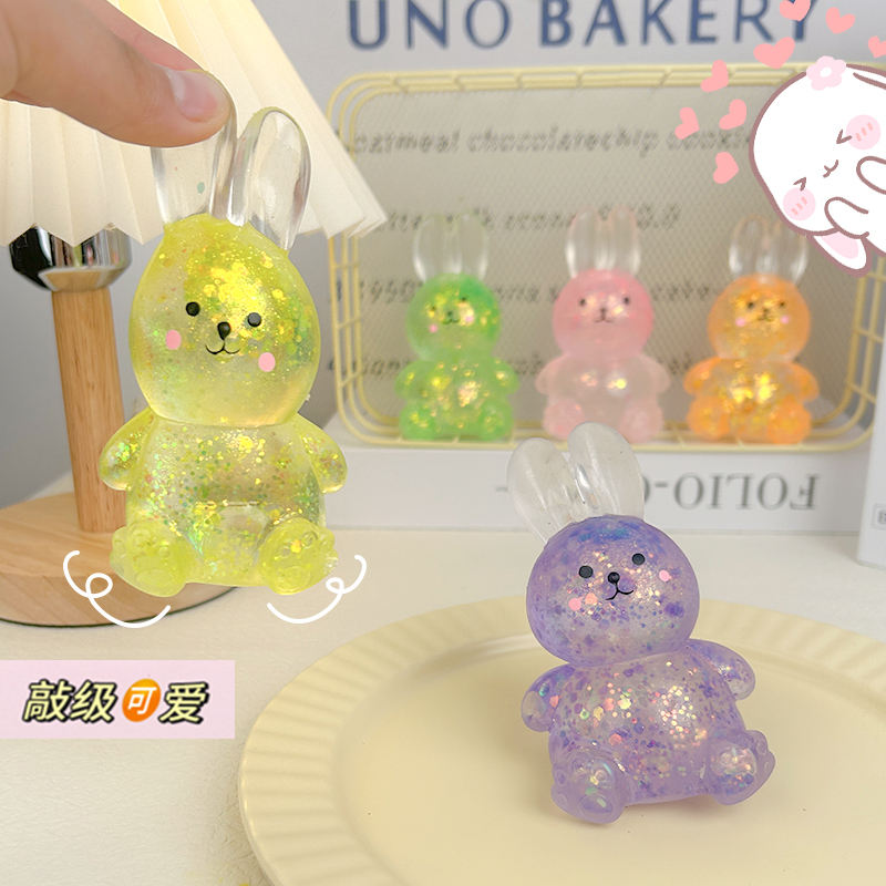 ของเล่นบีบรูปกระต่ายพลาสติกหลากสีสัน ประกายวิบวับ น่ารัก สร้างสรรค์ บรรเทาความเครียด สำหรับเด็ก ขายส่ง