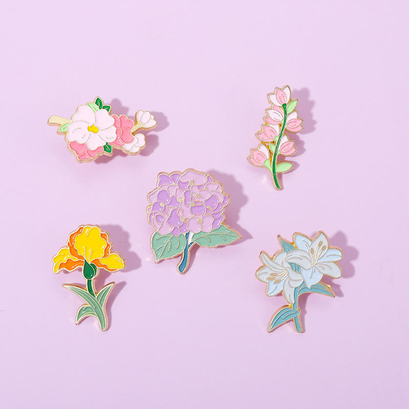 เข็มกลัดเคลือบรูปดอกไม้สีสันสดใสเข็มกลัดดอกลิลลี่ดอกพีชมีปกหมวกกระเป๋าเป้สะพายหลัง