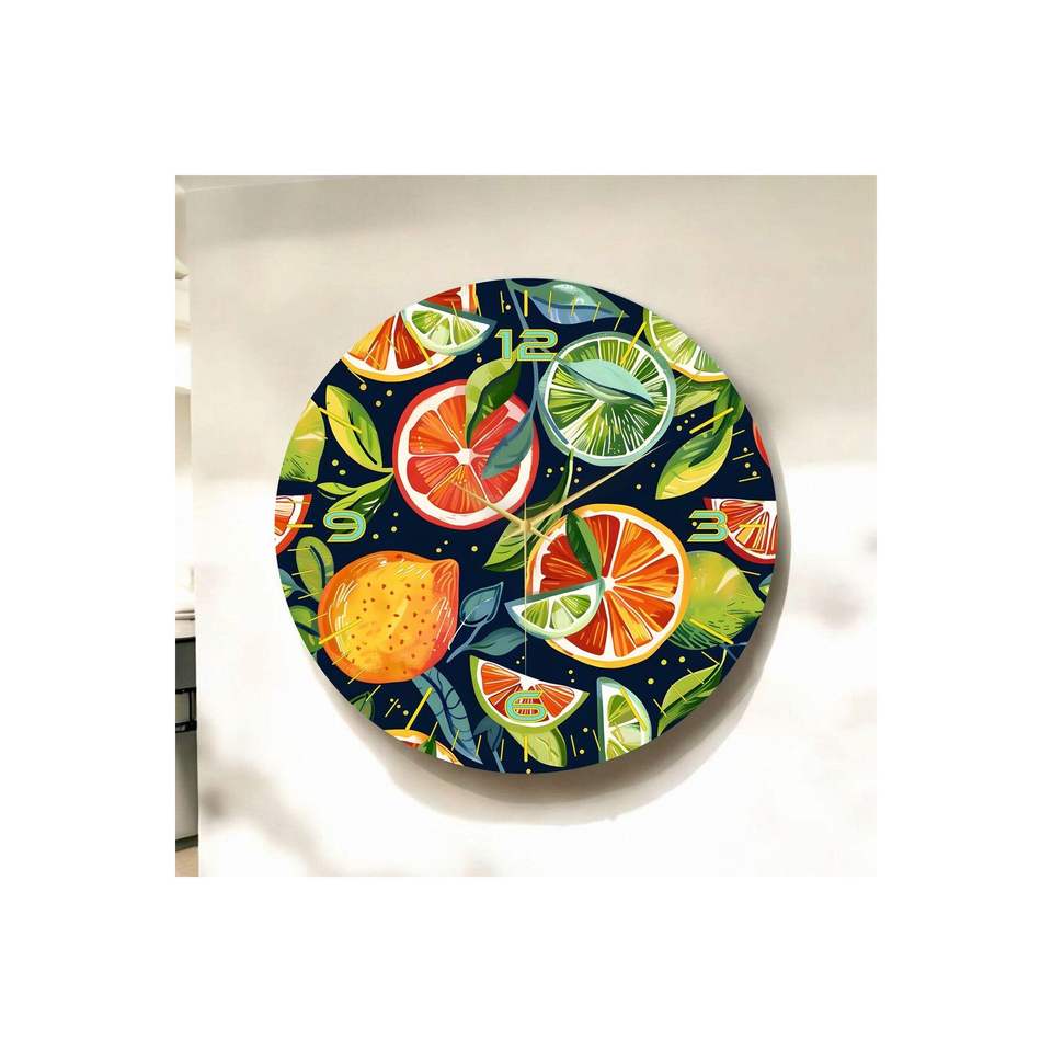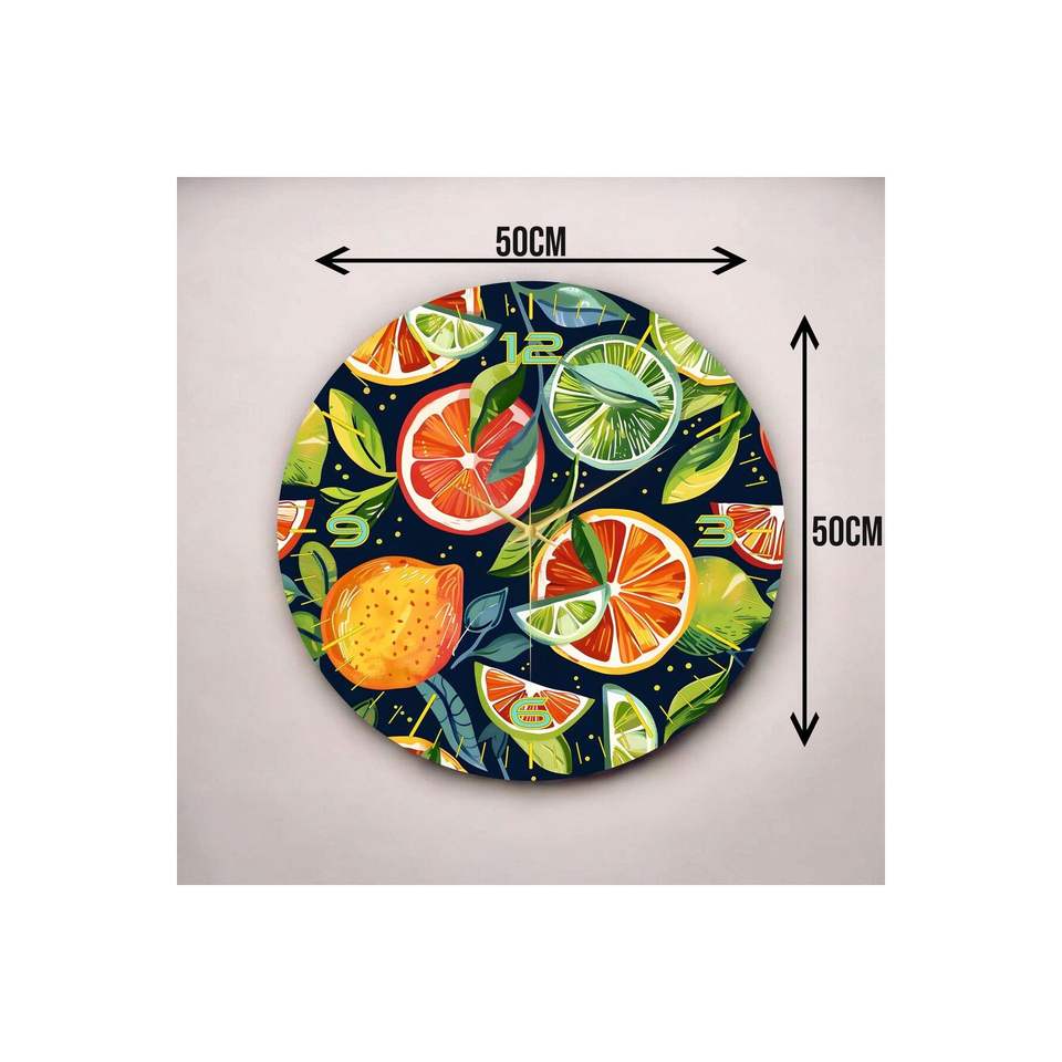 นาฬิกาติดผนังลายผลไม้หลากสี & หมายเลข50ซม. ตั้งโต๊ะไม้เงียบของขวัญที่สมบูรณ์แบบสำหรับตกแต่งบ้าน