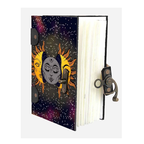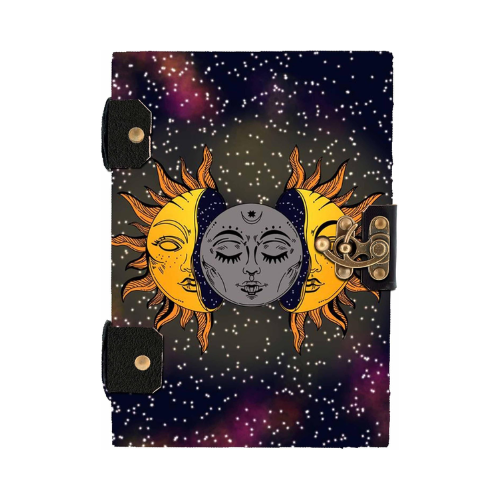 สมุดหนังพิมพ์ลายดวงดาวและดวงจันทร์สีสันสดใสของกาแลคซี