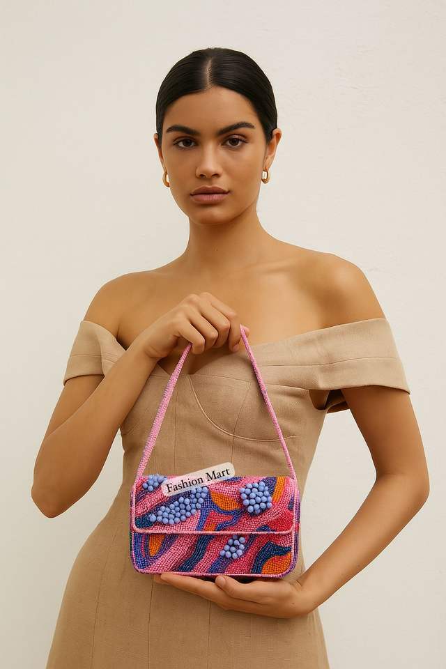 กระเป๋าประดับด้วยลูกปัดแก้วสีสันสดใสกระเป๋าทรงกุณโฑลายดอกไม้แนวแอบสแตรกต์