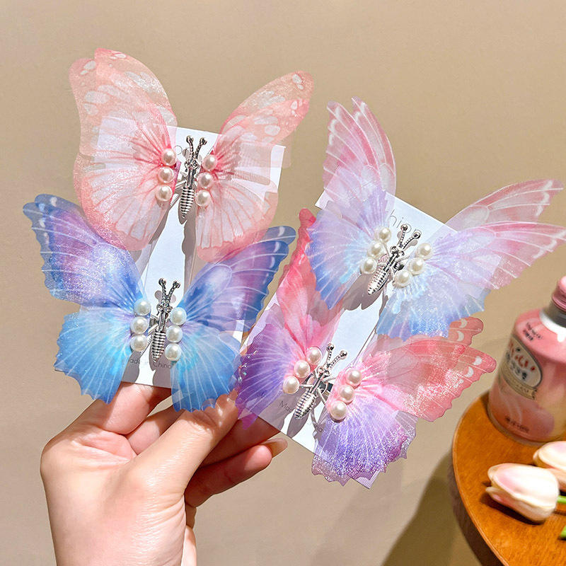 ปิ่นปักผมไข่มุกกากเพชรสีสดใสเคลื่อนไหวได้กิ๊บติดผมผีเสื้อขนาดใหญ่สวยสำหรับเด็กผู้หญิงงานปาร์ตี้