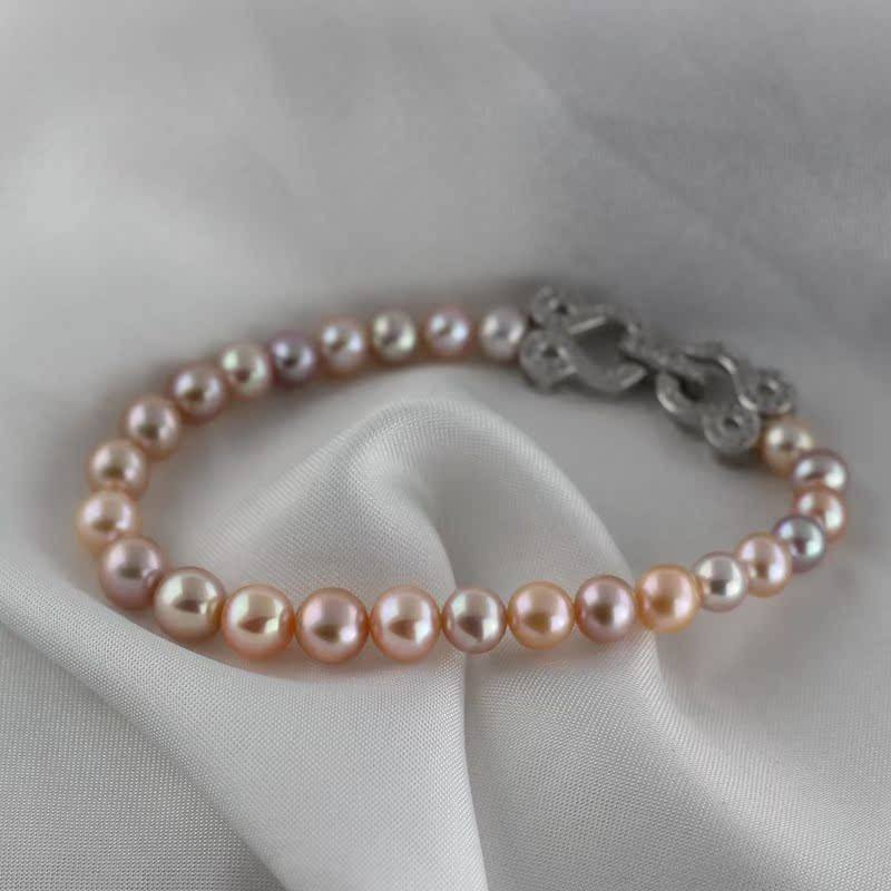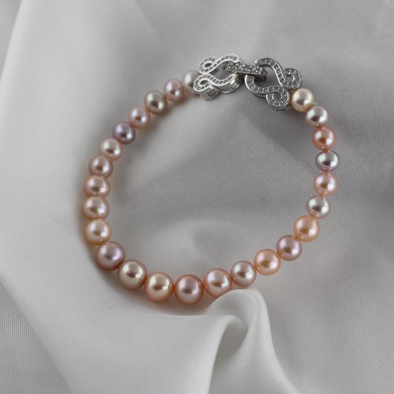 สร้อยข้อมือและสร้อยคอแบบชุด ดีไซน์โซ่ไล่เฉดสีสันสดใส ประดับมุกน้ำจืดและมุกหลากสี