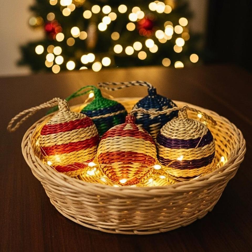 ชุดเครื่องประดับตกแต่งต้นคริสต์มาสทรงกลมสานหวายหลากสีสัน ทำมือ 3 ลูก ตกแต่งต้นไม้หลากสีสัน คลาสสิก สำหรับเทศกาลวันหยุด