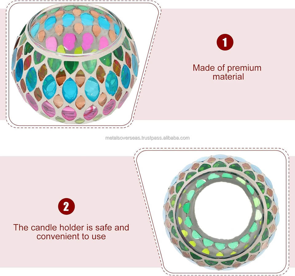 เชิงเทียนแก้วโมเสคสีสันสดใสแบบทำมือที่วางของตกแต่งบ้านและปาร์ตี้อเนกประสงค์ดีไซน์คริสต์มาสไม่เหมือนใครสำหรับงานแต่งงานวันหยุด