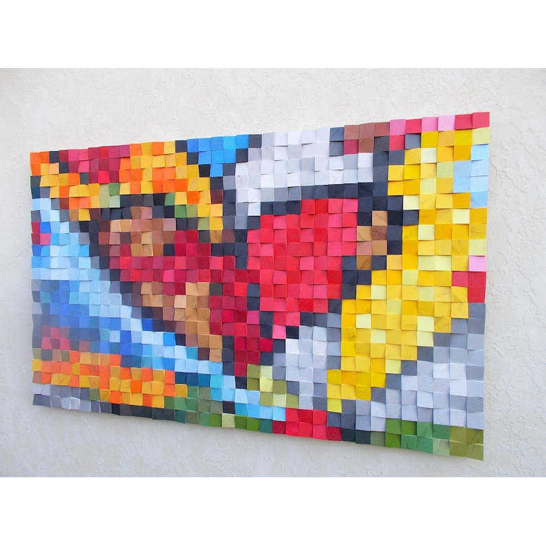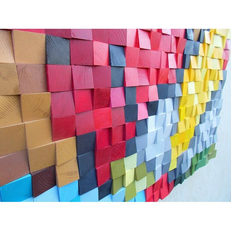 ของตกแต่งทำจากไม้โมเสครูปหัวใจสีสันสดใสติดผนัง