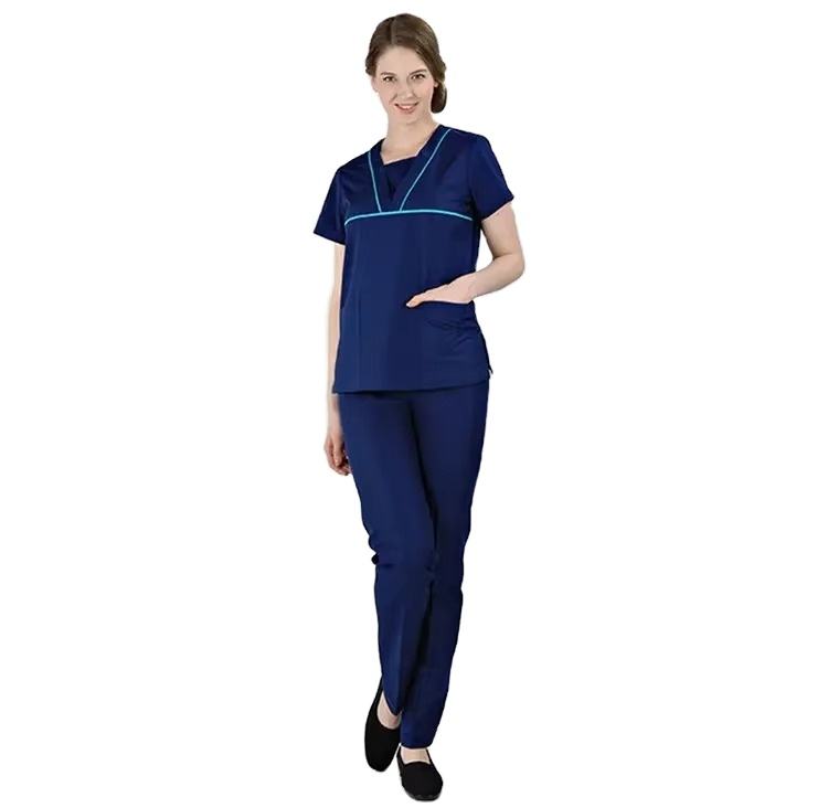 ชุดเครื่องแบบขัดตัวยูนิเซ็กส์สำหรับโรงพยาบาลชุดพยาบาลคลินิกทางการแพทย์หญิงชุดขัดตัวแขนสั้นมีกระเป๋า